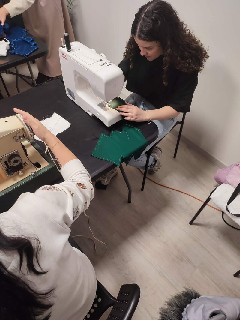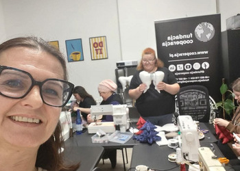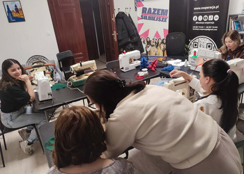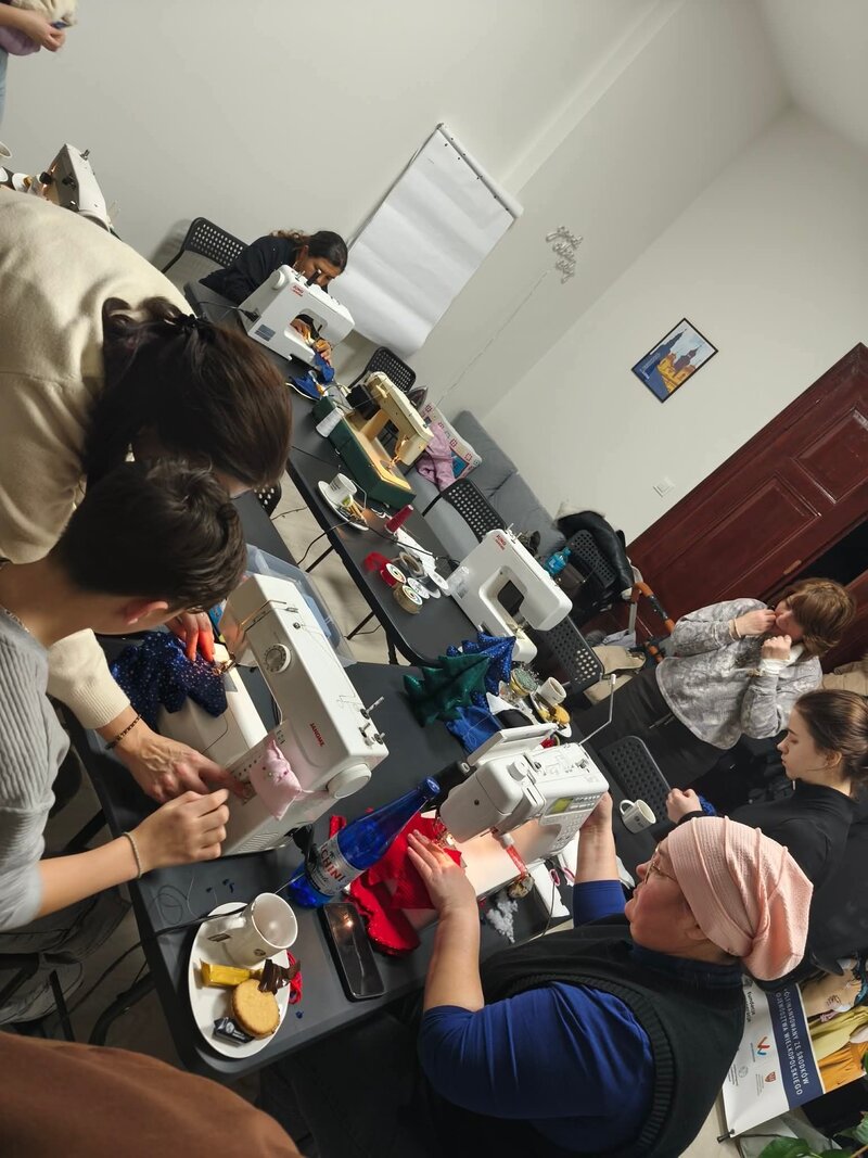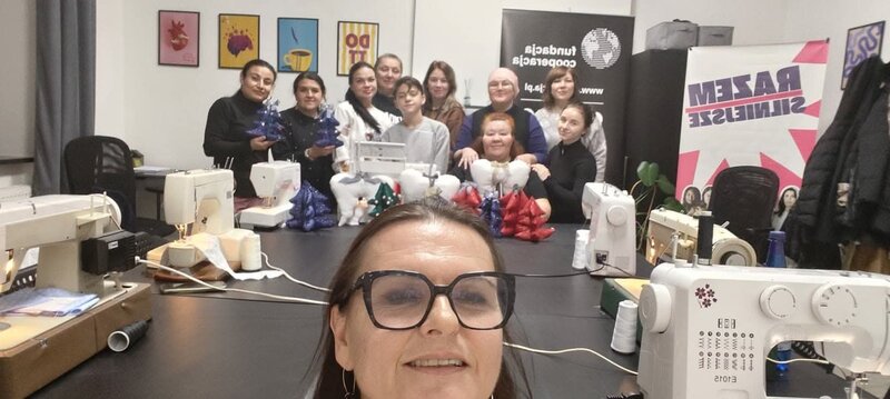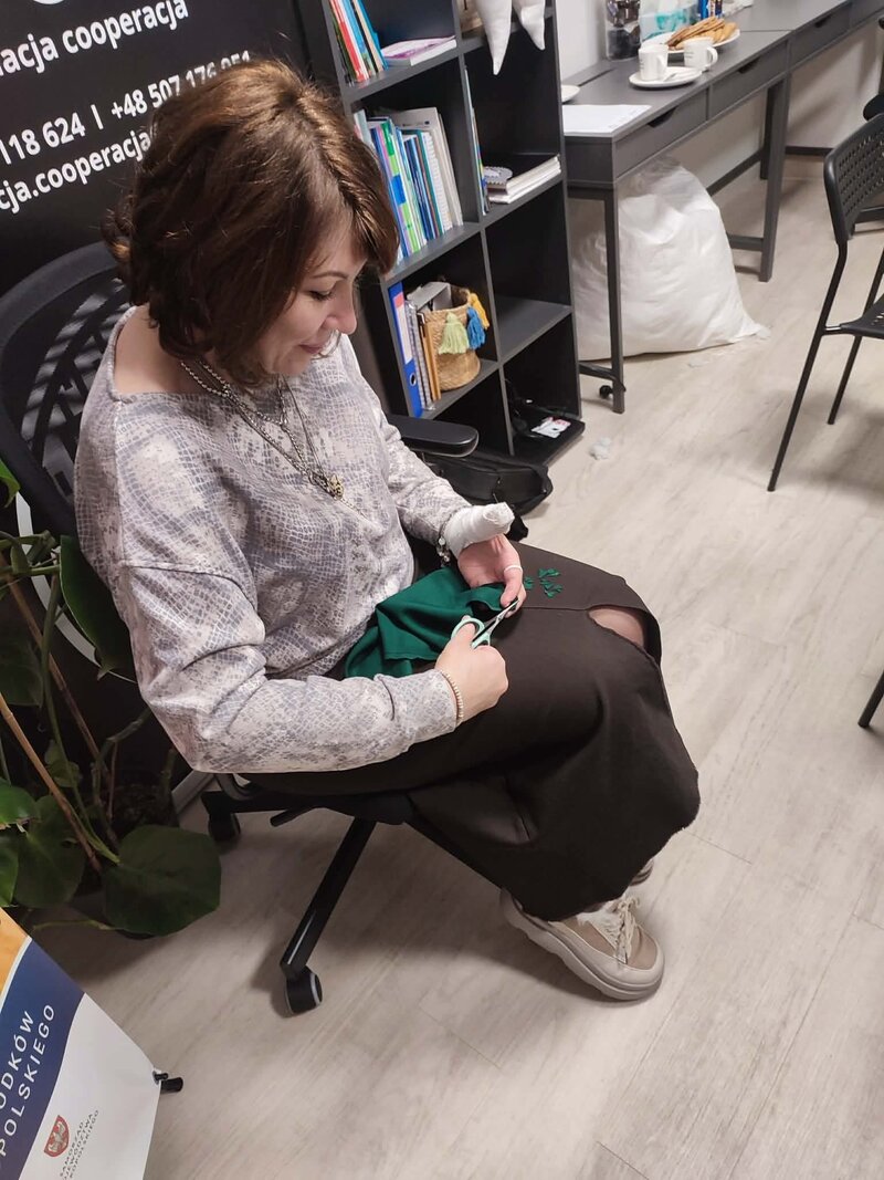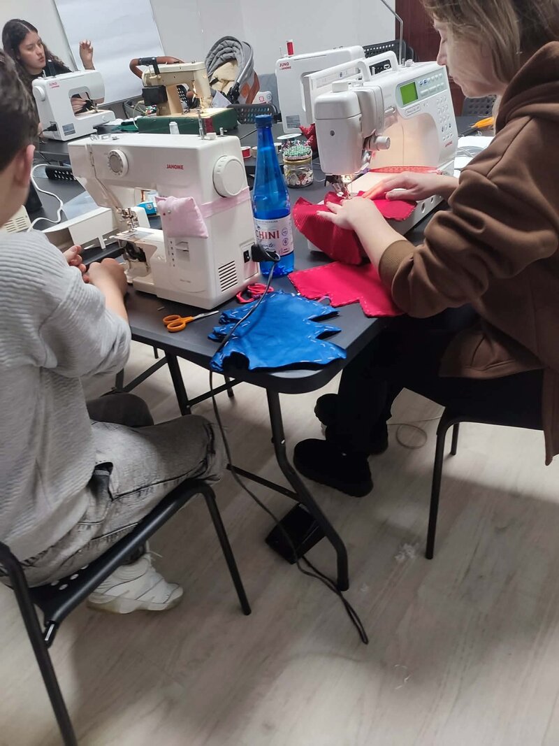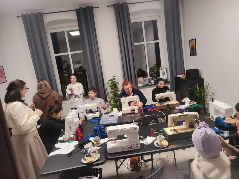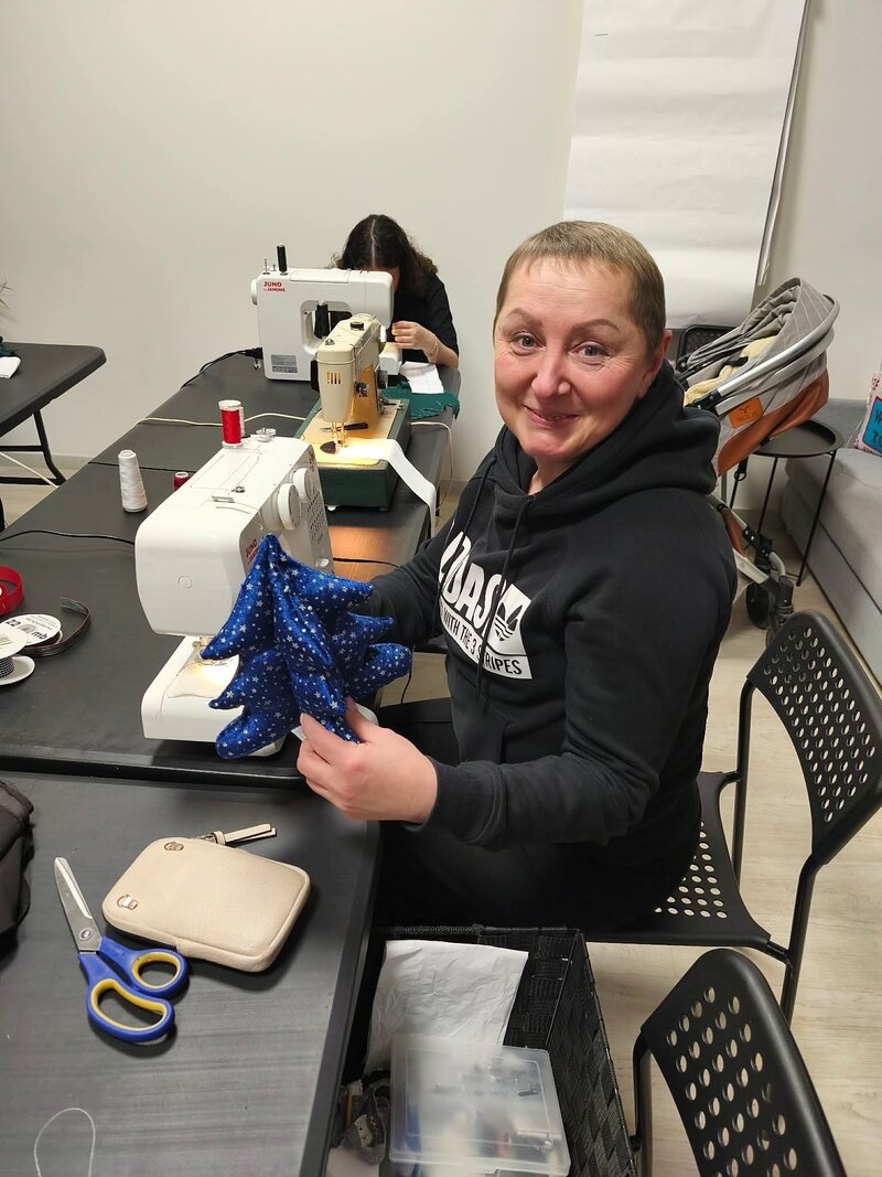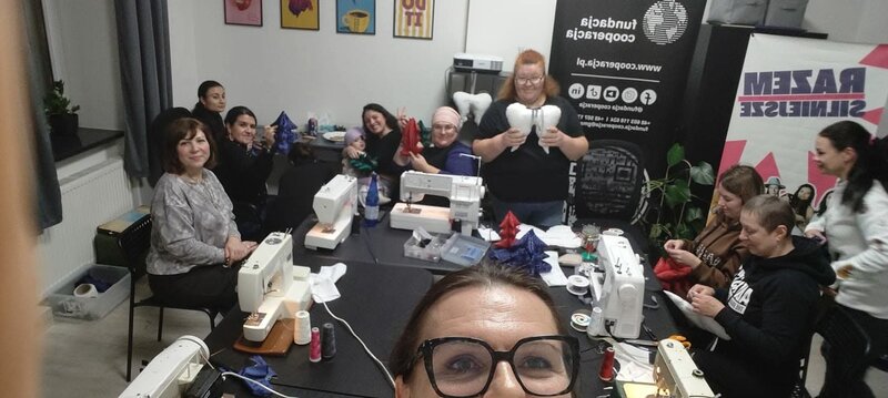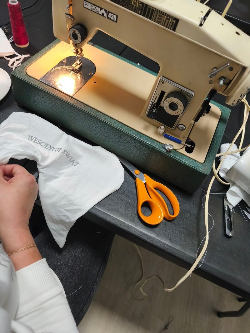Praca przy maszynach szybko stała się okazją do budowania bliskich, sąsiedzkich relacji. Pojawiły się rozmowy o tradycjach, codzienności, a także o tym, jak wiele nas łączy mimo różnych języków i kultur. Warsztaty były przestrzenią integracji, uważności i wzajemnego wsparcia – dokładnie taką, jaką chcieliśmy stworzyć w tym projekcie.