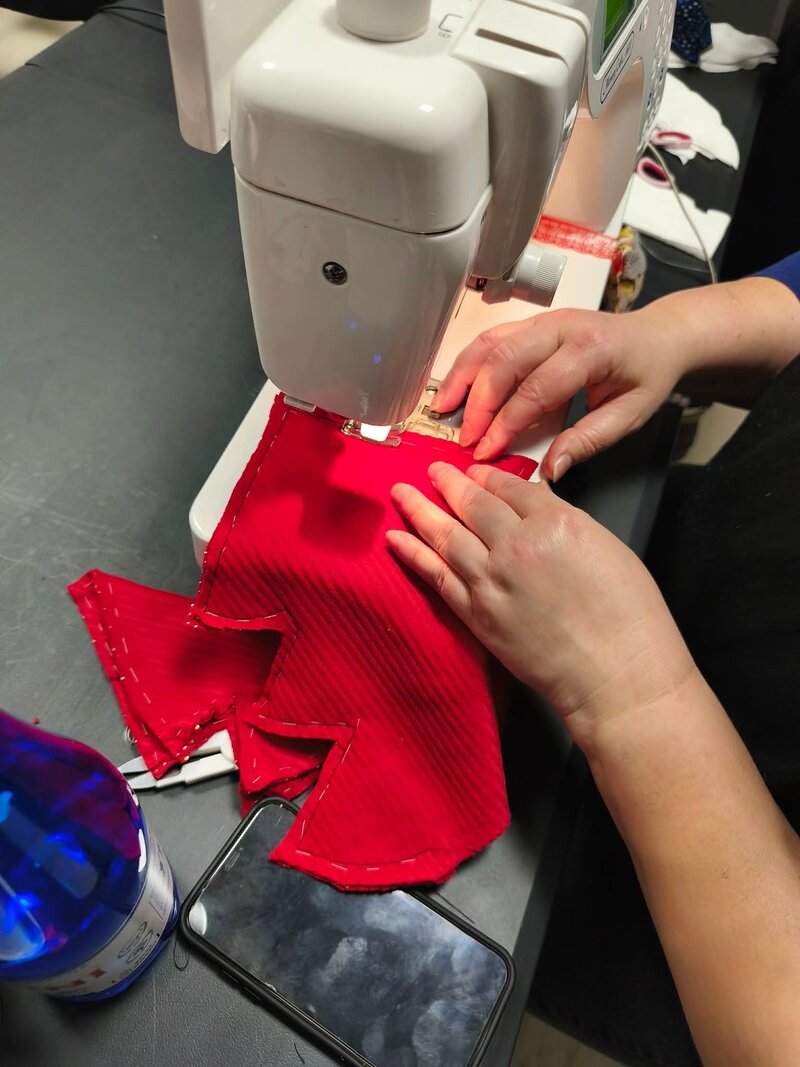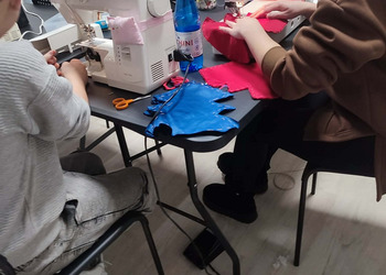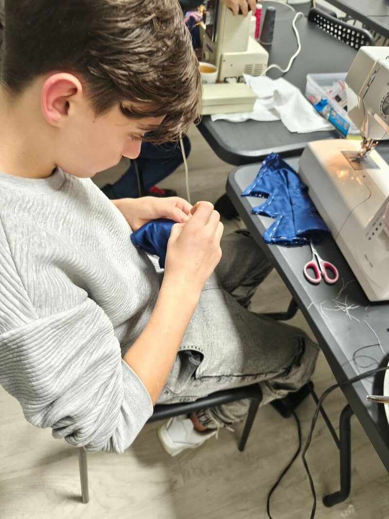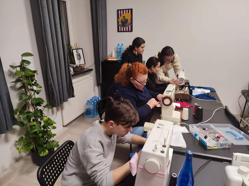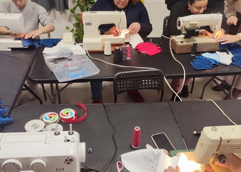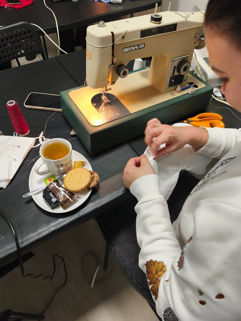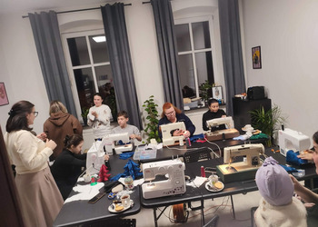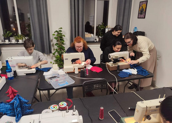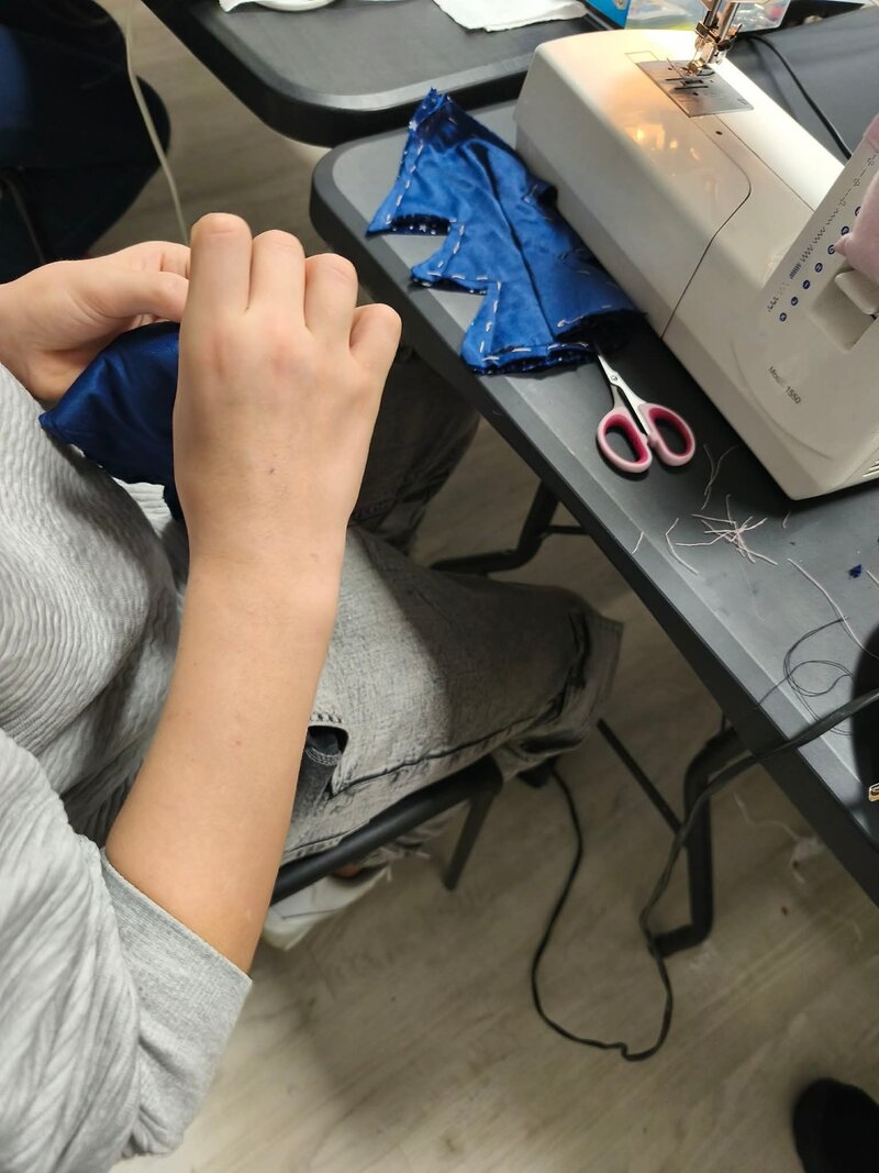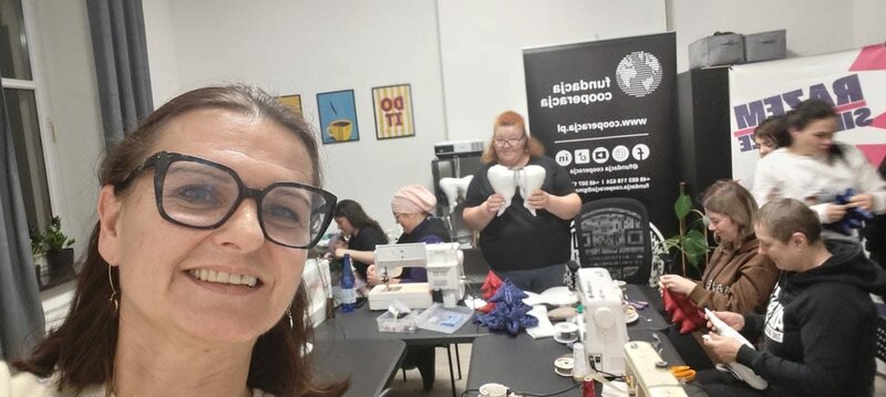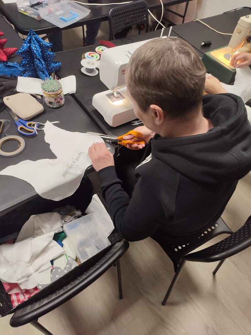 Praca przy maszynach szybko stała się okazją do budowania bliskich, sąsiedzkich relacji. Pojawiły się rozmowy o tradycjach, codzienności, a także o tym, jak wiele nas łączy mimo różnych języków i kultur. Warsztaty były przestrzenią integracji, uważności i wzajemnego wsparcia – dokładnie taką, jaką chcieliśmy stworzyć w tym projekcie.