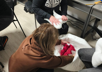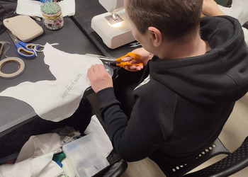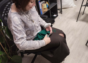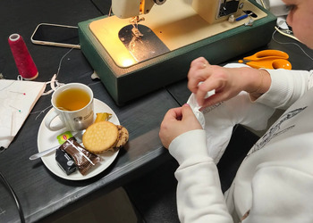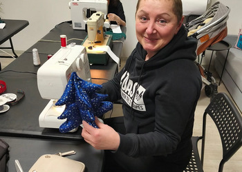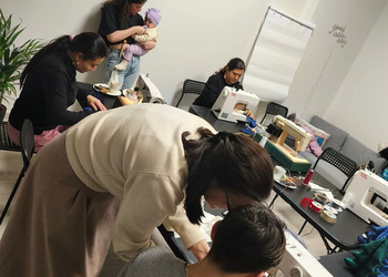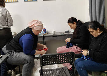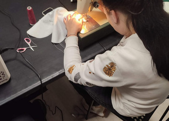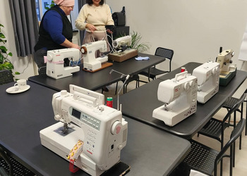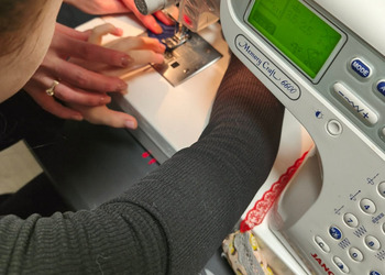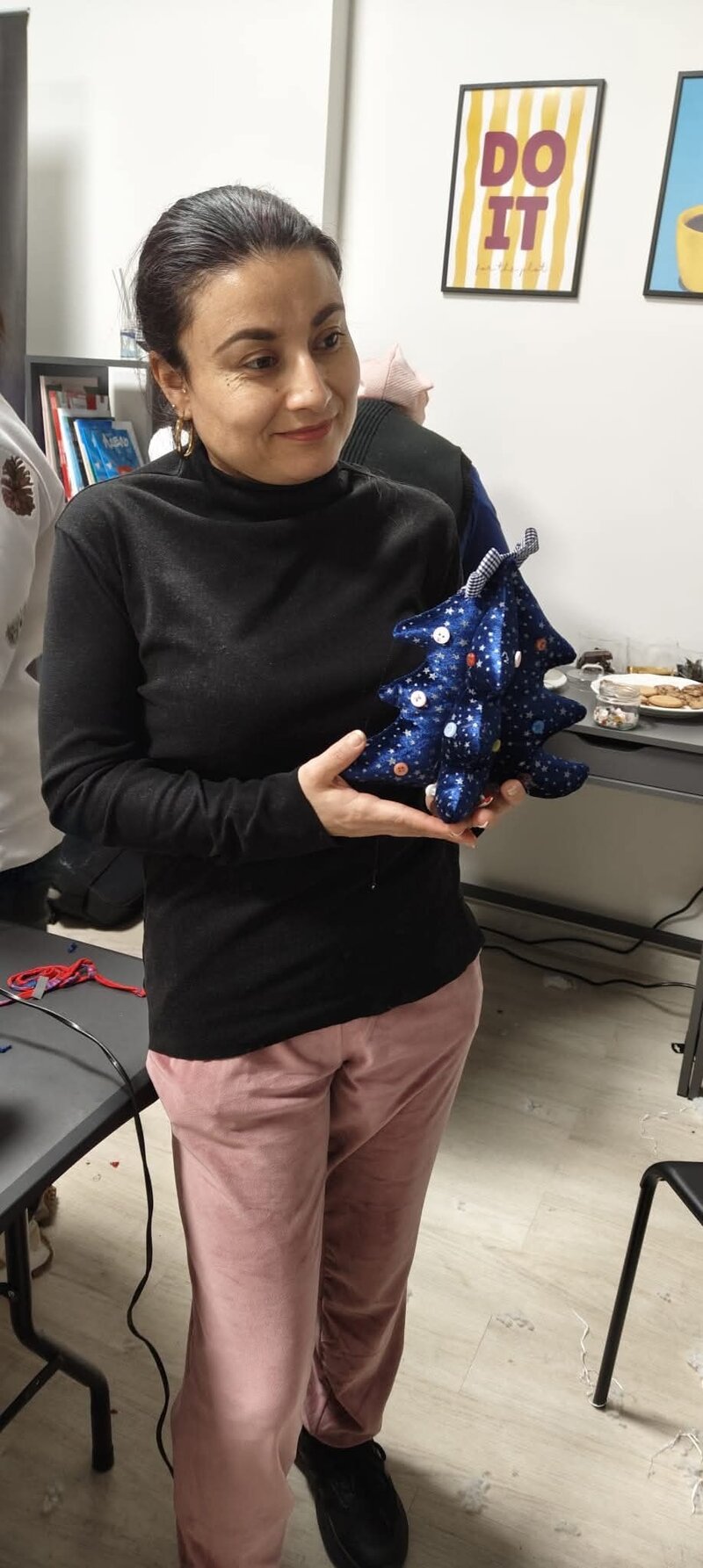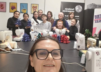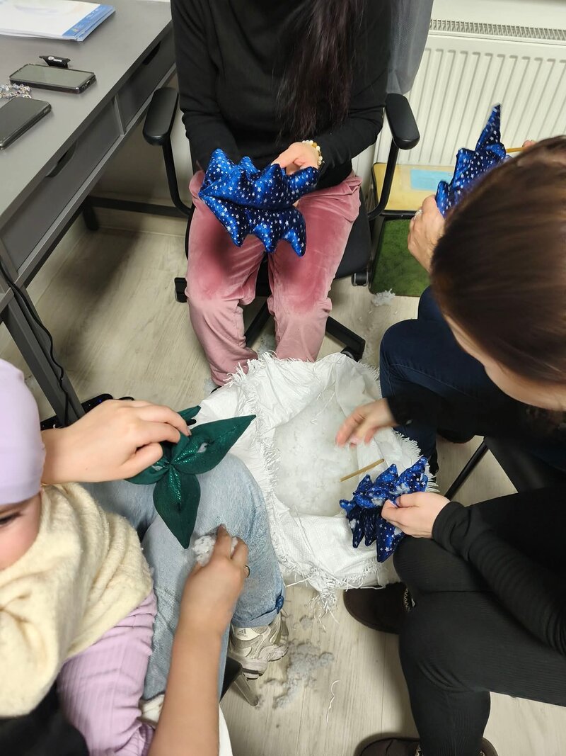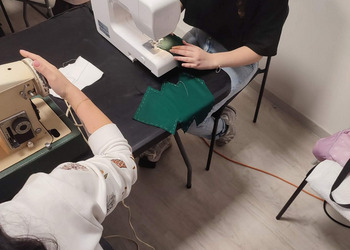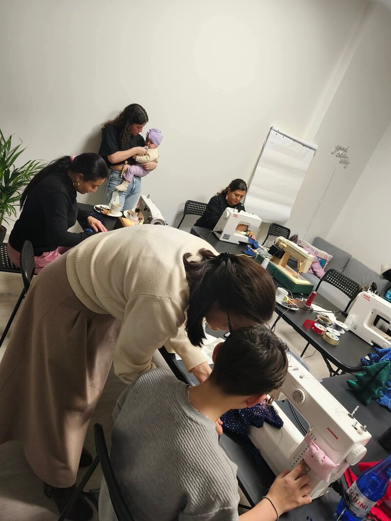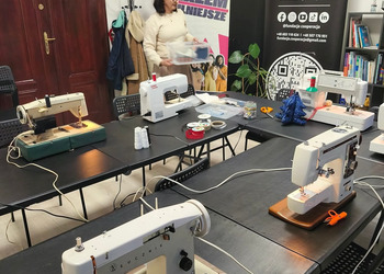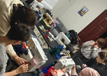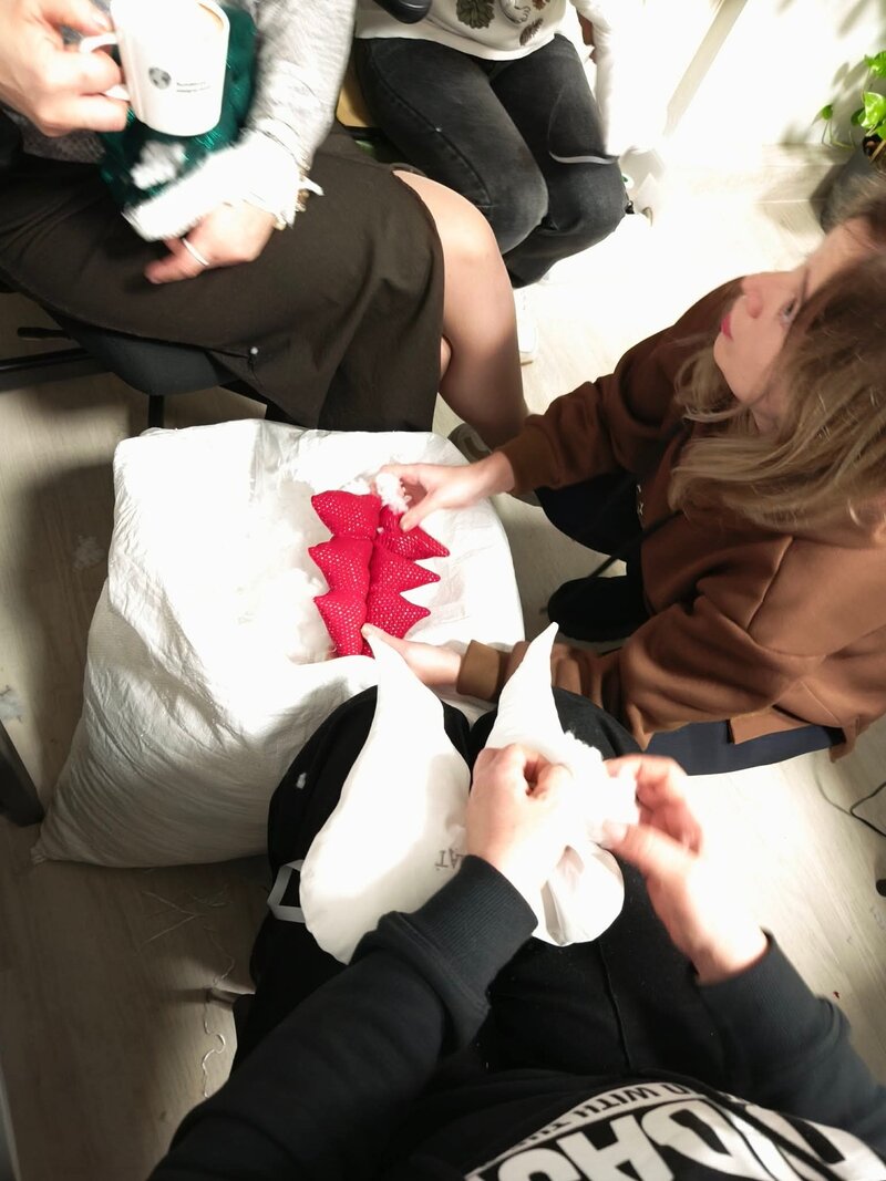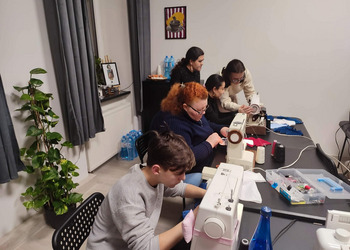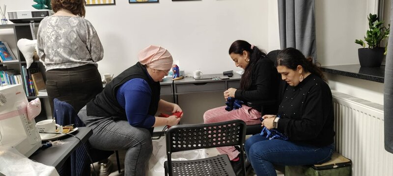 Praca przy maszynach szybko stała się okazją do budowania bliskich, sąsiedzkich relacji. Pojawiły się rozmowy o tradycjach, codzienności, a także o tym, jak wiele nas łączy mimo różnych języków i kultur. Warsztaty były przestrzenią integracji, uważności i wzajemnego wsparcia – dokładnie taką, jaką chcieliśmy stworzyć w tym projekcie.