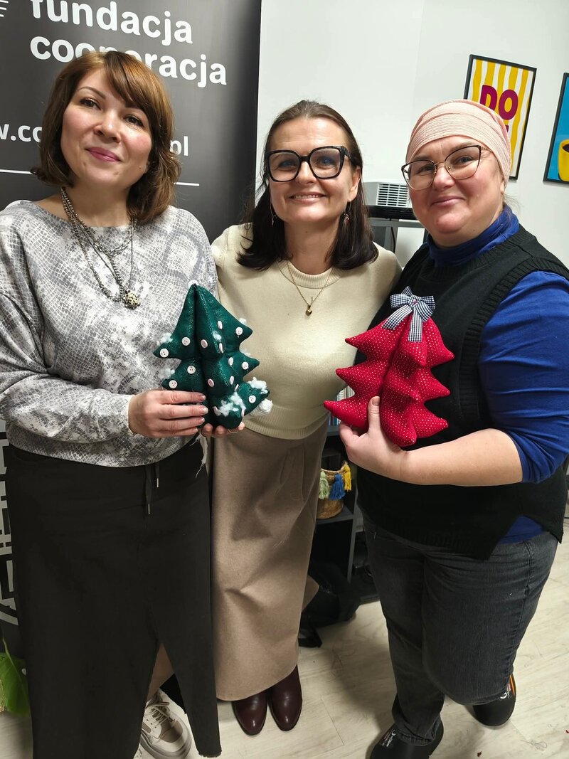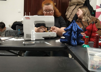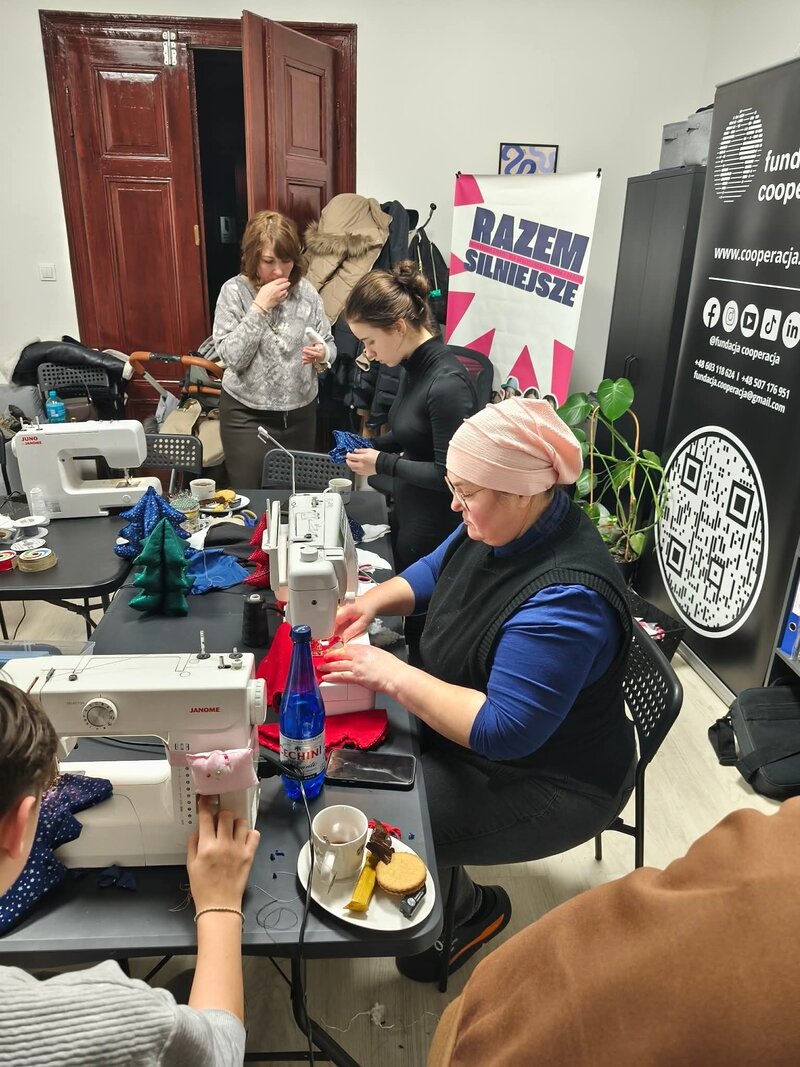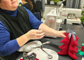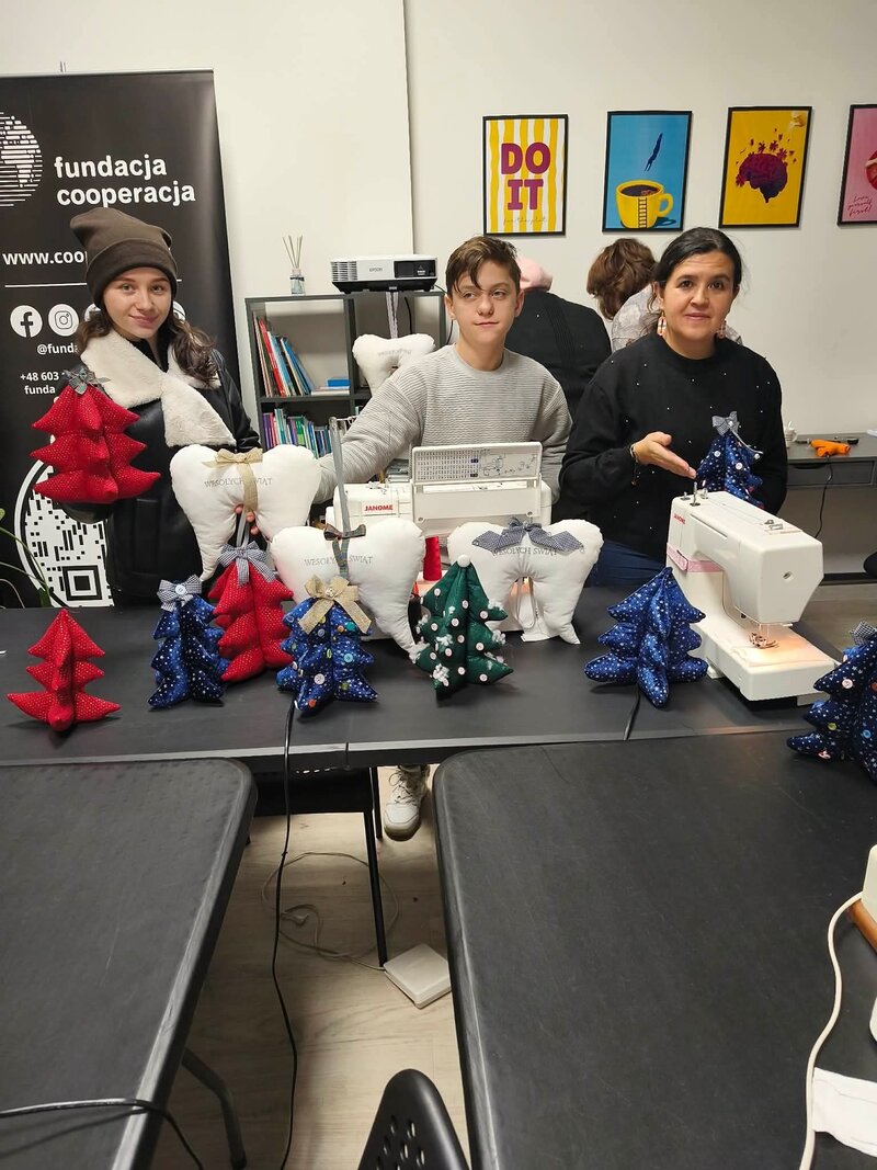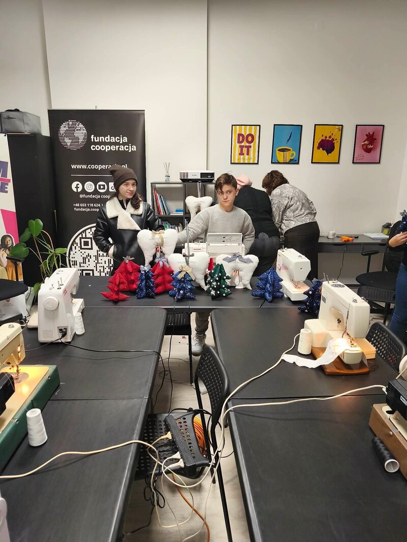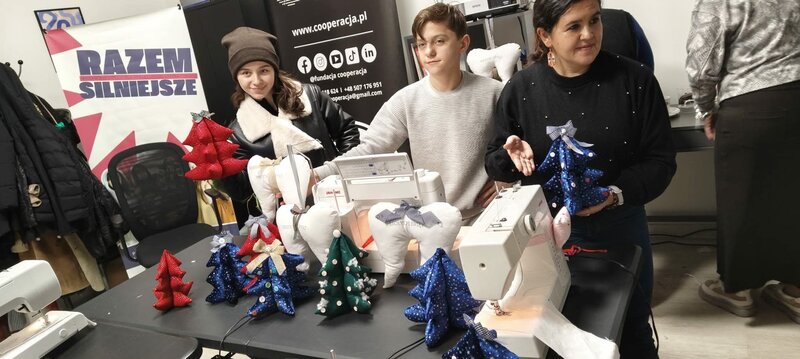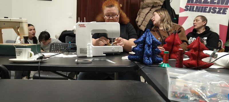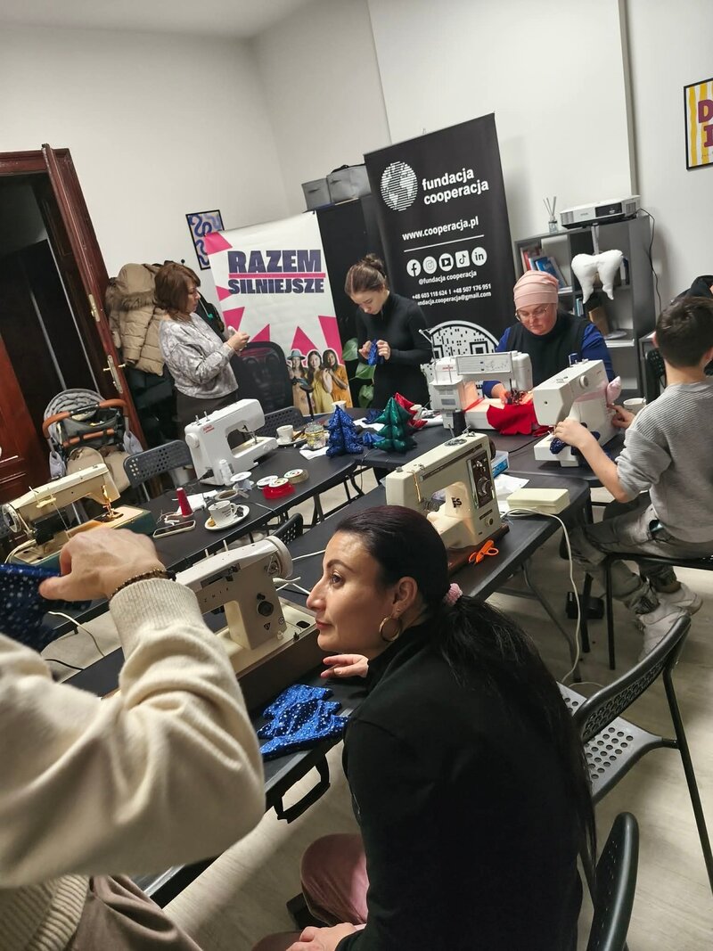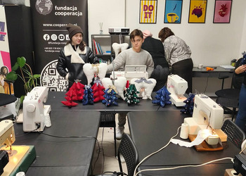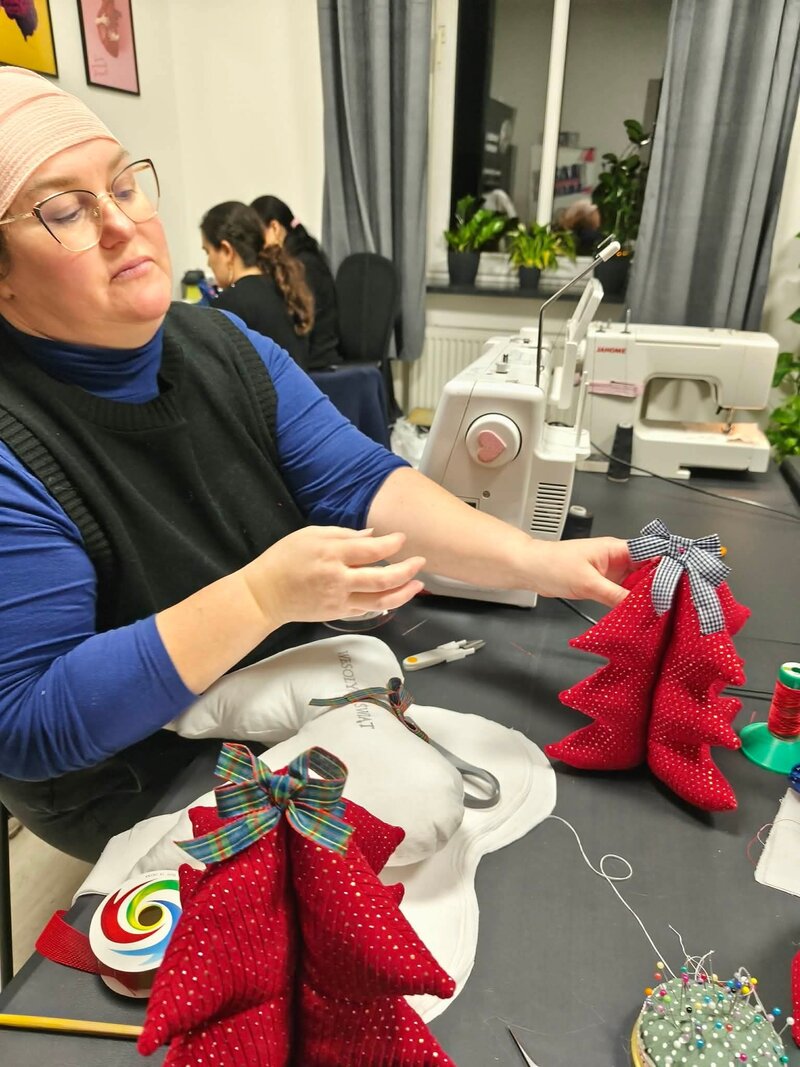 Tym razem Ilona i Olga zaprosiły mieszkanki i mieszkańców Leszna do udziału w warsztatach szycia na maszynach. Uczestnicy stworzyli piękne, świąteczne dekoracje, ale – co równie ważne – spędzili razem czas, dzieląc się opowieściami, doświadczeniami i świąteczną atmosferą.