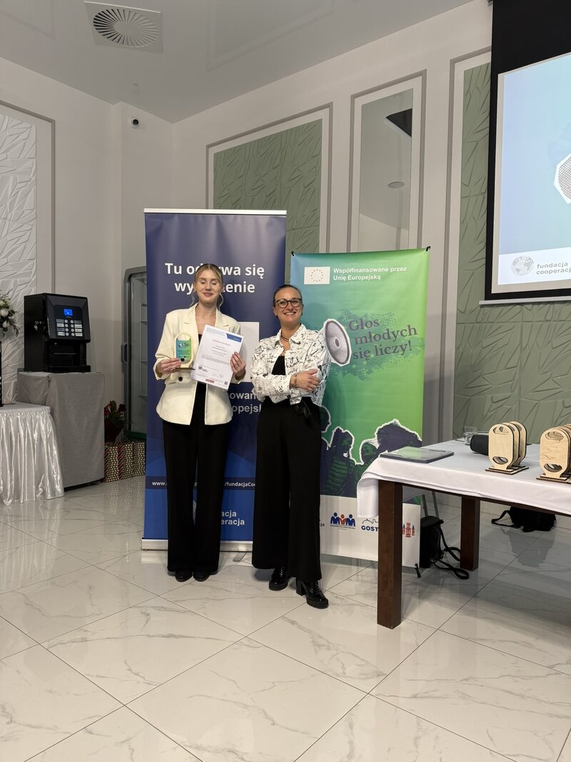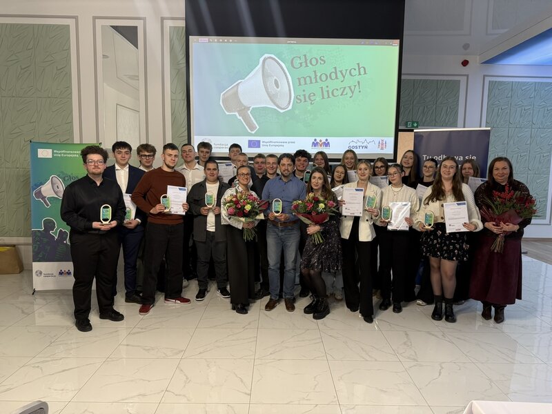 24 listopada 2025 roku w Restauracji Słonecznej w Gostyniu odbyło się uroczyste podsumowanie projektu "Głos młodych się liczy", realizowanego przez Fundację Cooperacja we współpracy z Młodzieżową Radą Miejską Gostynia. Przez ostatnie dwa lata wspólnie pracowaliśmy nad wzmocnieniem głosu młodych w życiu publicznym, budowaniem kompetencji i wspieraniem aktywności obywatelskiej.