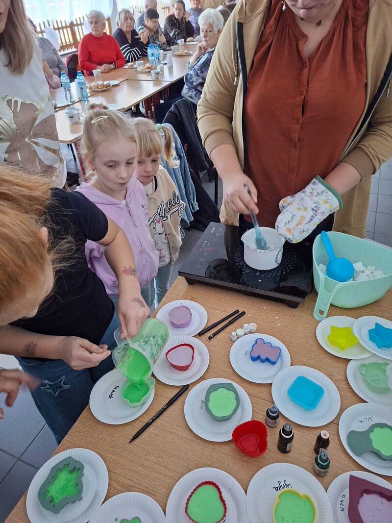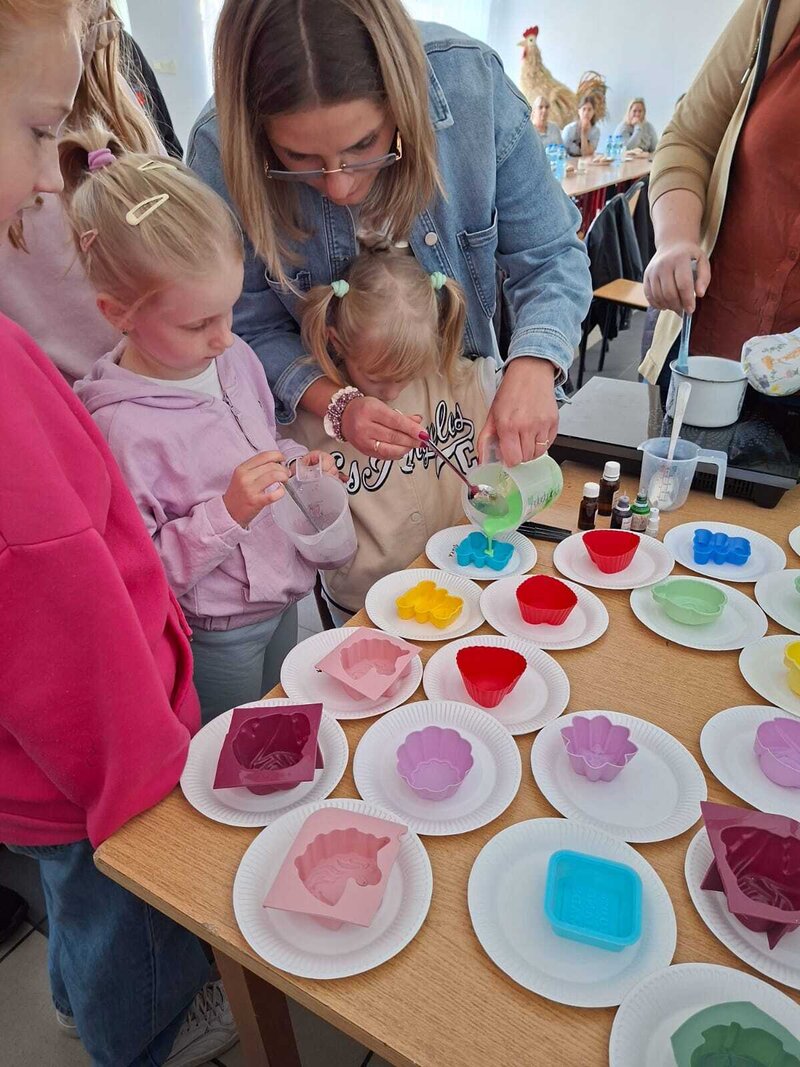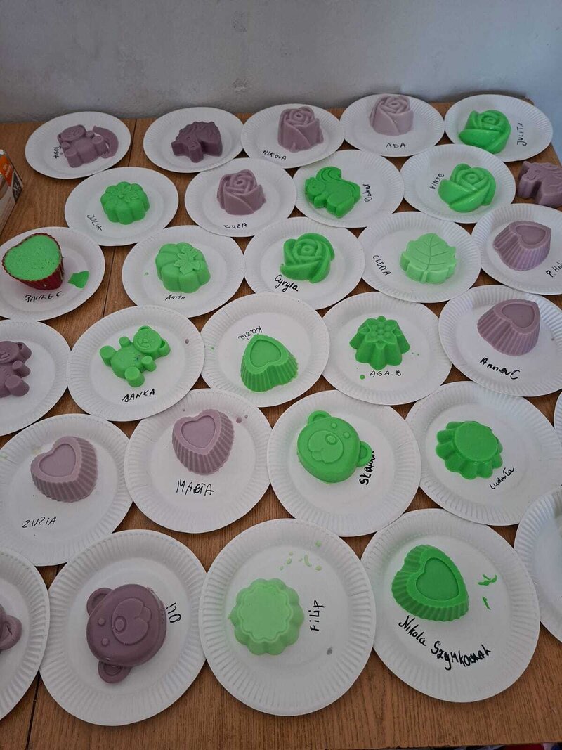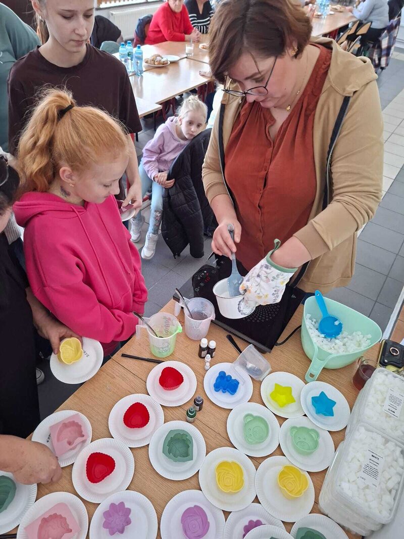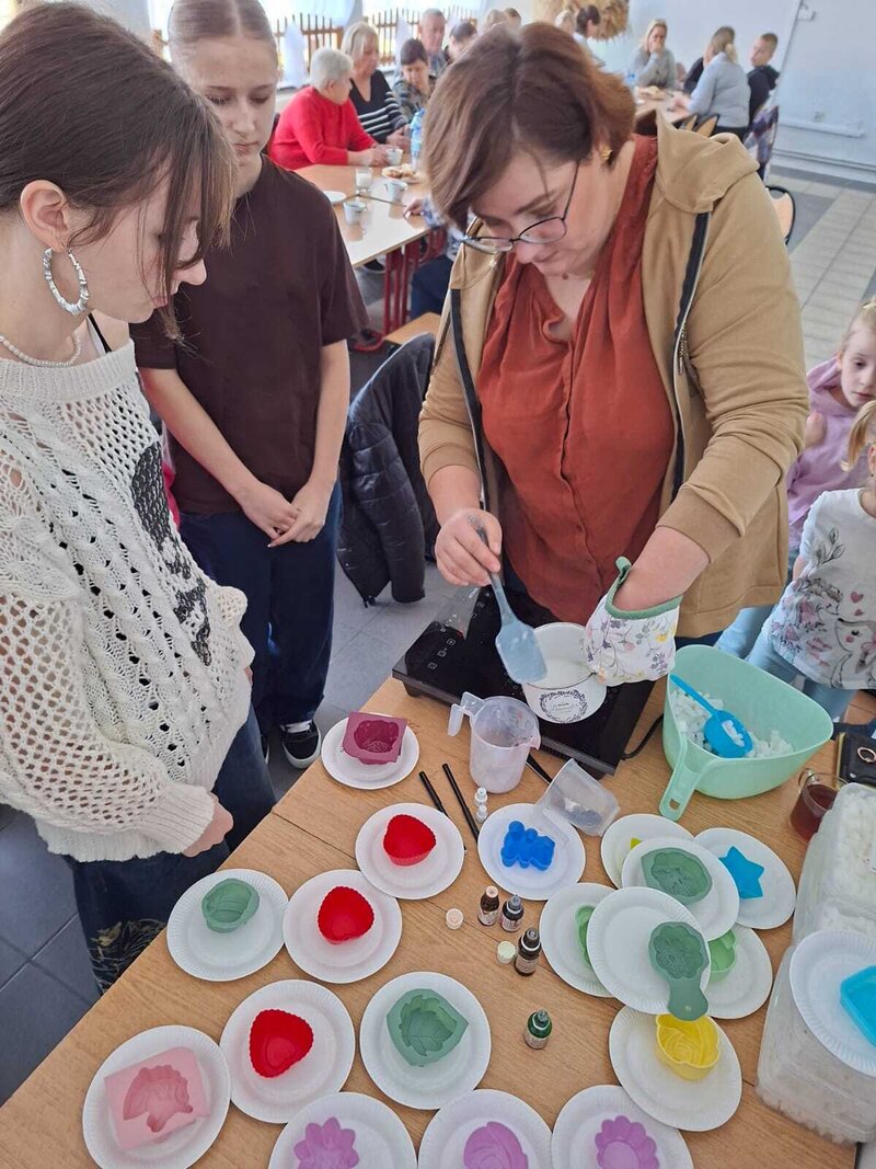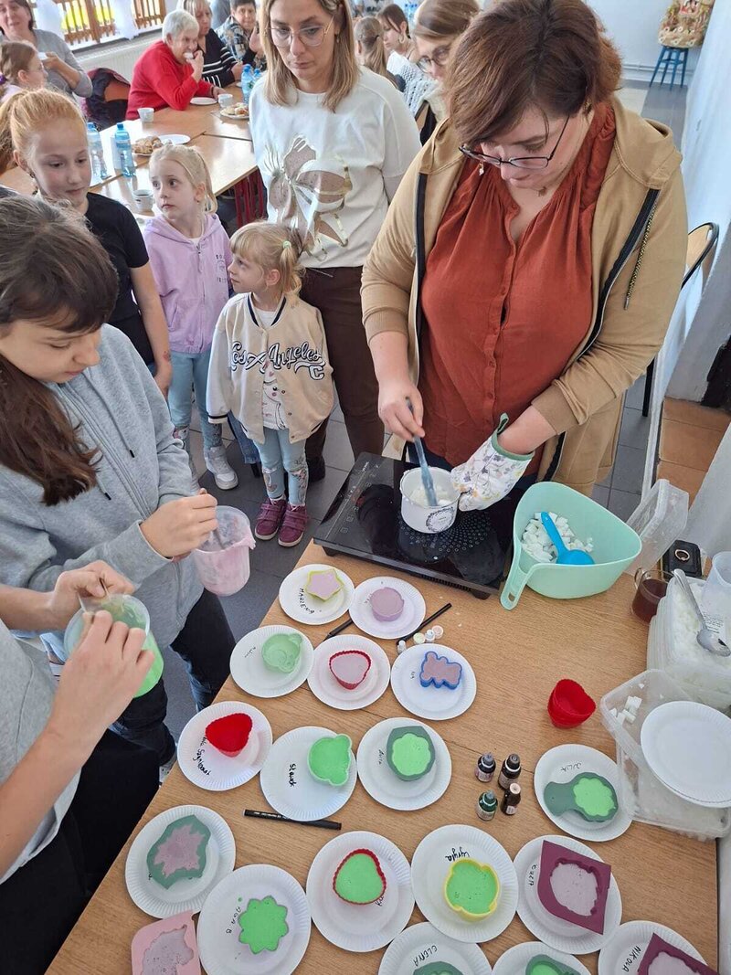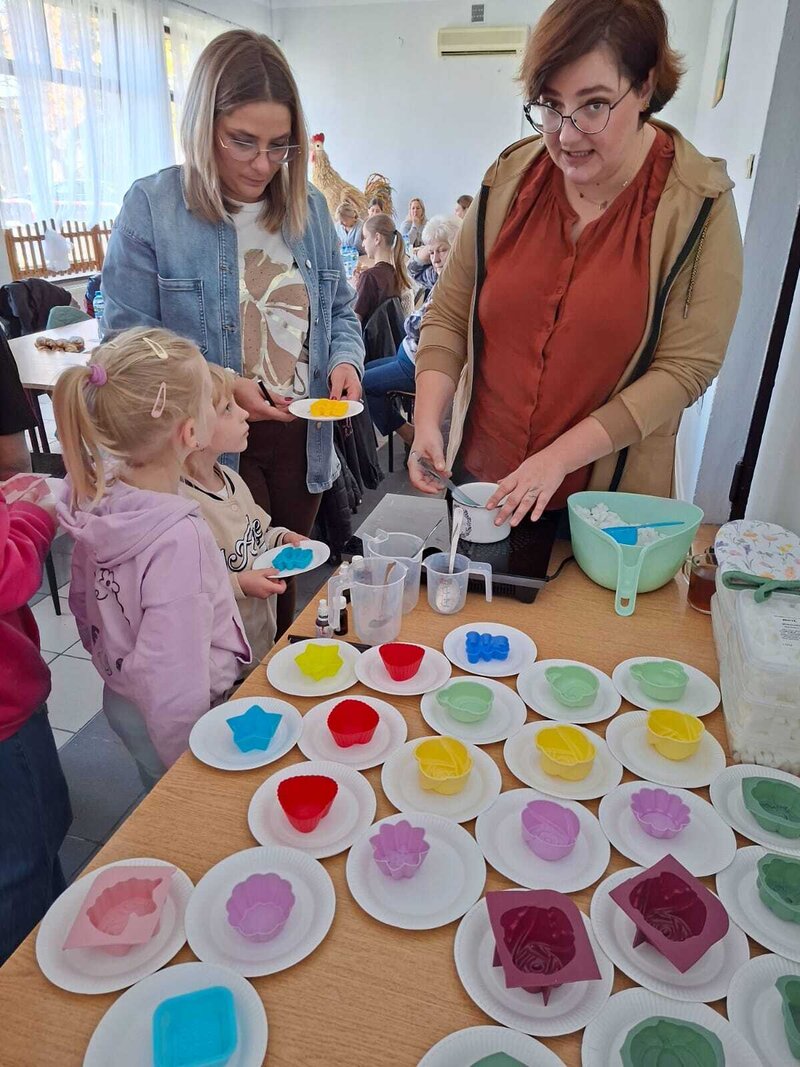 Podczas spotkania każdy mógł puścić wodze fantazji i przygotować swoje własne pachnące, kolorowe mydełko – wybierając kształty, barwy i dodatki. Powstały prawdziwe małe dzieła sztuki – kreatywne, unikalne i… gotowe do zabrania do domu.