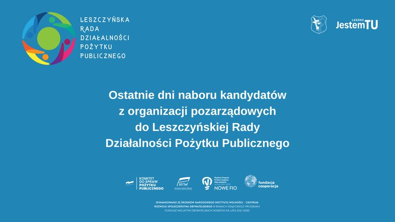 Trwa nabór kandydatów z organizacji pozarządowych do Leszczyńskiej Rady Działalności Pożytku Publicznego. Zgłoszenia można składać tylko do 5 września 2025 roku – to już ostatnie dni, by wziąć udział w tym ważnym procesie.