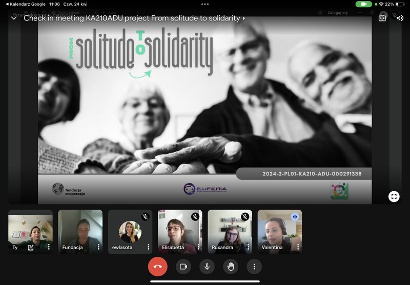 24 kwietnia 2025 r. odbyło się pierwsze spotkanie online partnerów projektu „From Solitude to Solidarity”. Choć część z nas współpracowała już na etapie przygotowywania wniosku, teraz oficjalnie zaczynamy realizację działań!