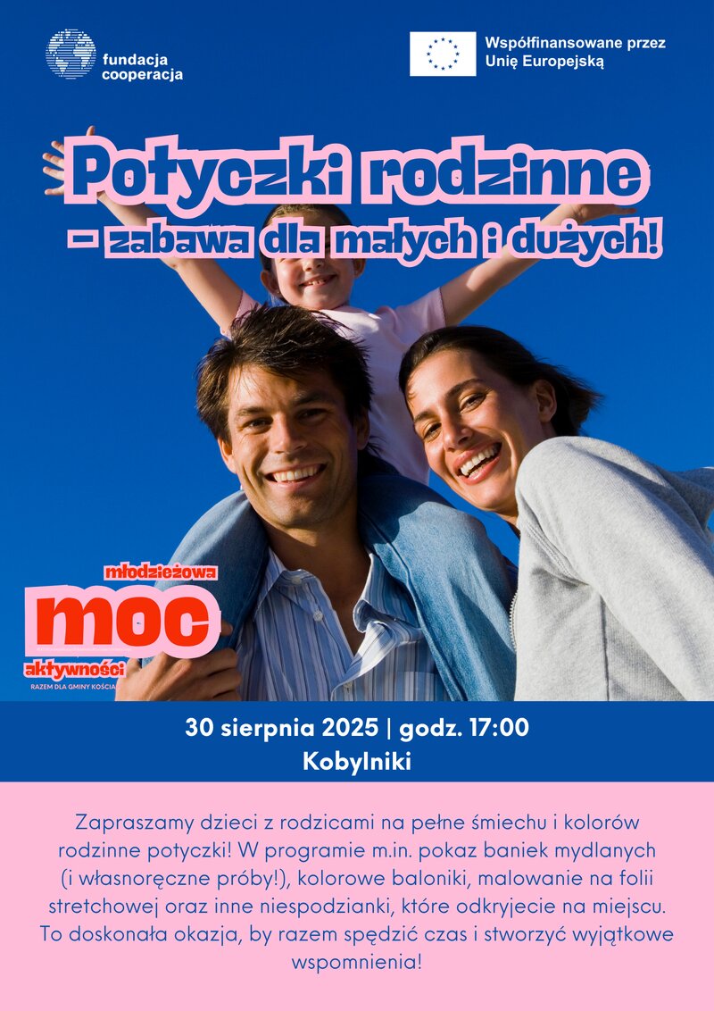 30 sierpnia 2025 roku o godzinie 17:00 zapraszamy dzieci wraz z rodzicami na rodzinne potyczki – pełne radości, kolorów i wspólnej zabawy. To propozycja dla wszystkich, którzy chcą aktywnie spędzić czas i stworzyć miłe wspomnienia w gronie bliskich.
