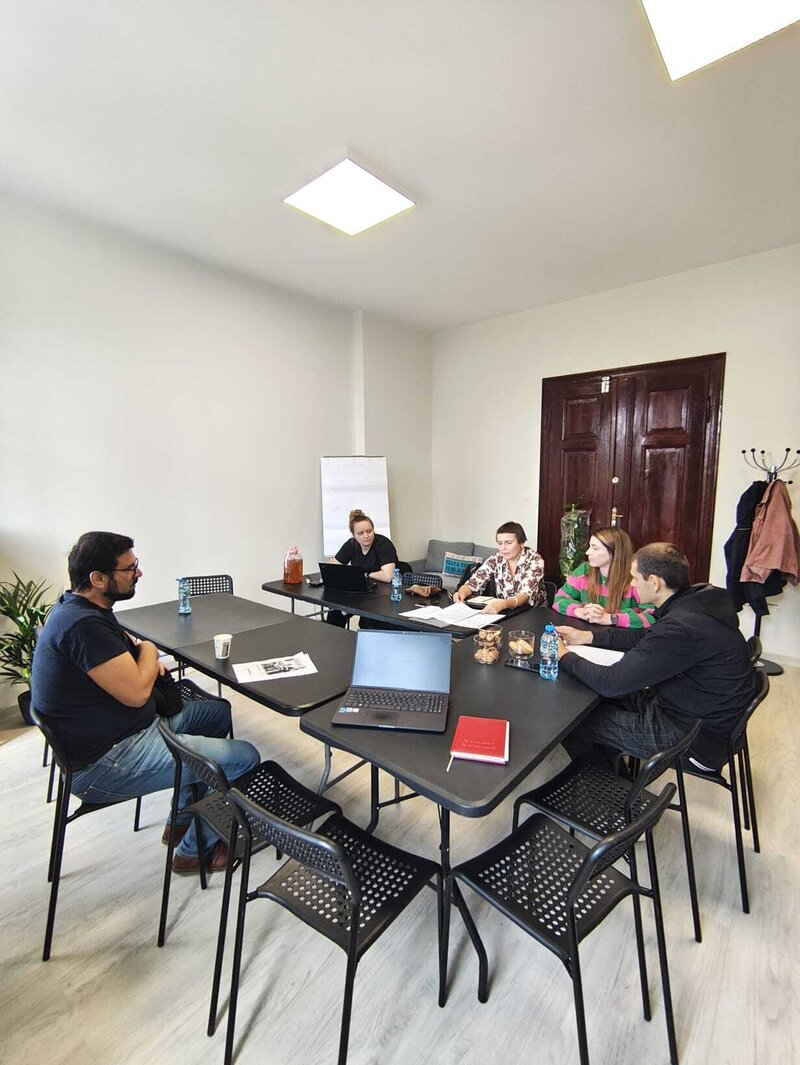 Rozmowy dotyczyły kwestii technicznych, logistyki, światła, dźwięku i aranżacji przestrzeni. Była to także okazja do zapoznania się z warunkami scenicznymi i możliwościami, jakie oferuje teatr – a także do pierwszej wizyty w miejscu, gdzie niebawem spotka się publiczność z historią stworzoną przez uczestników międzynarodowego projektu.