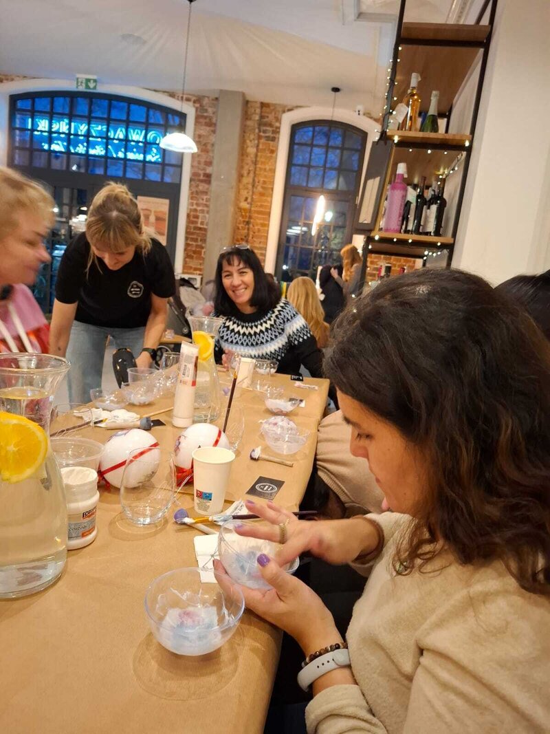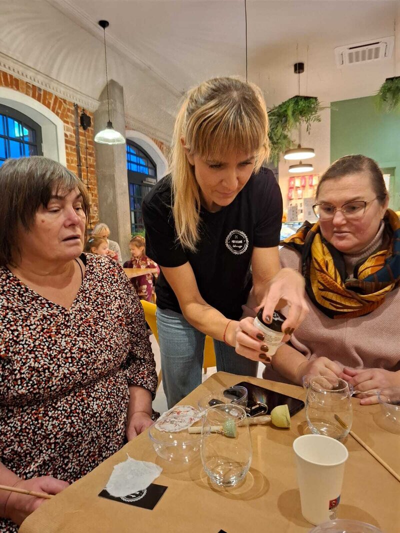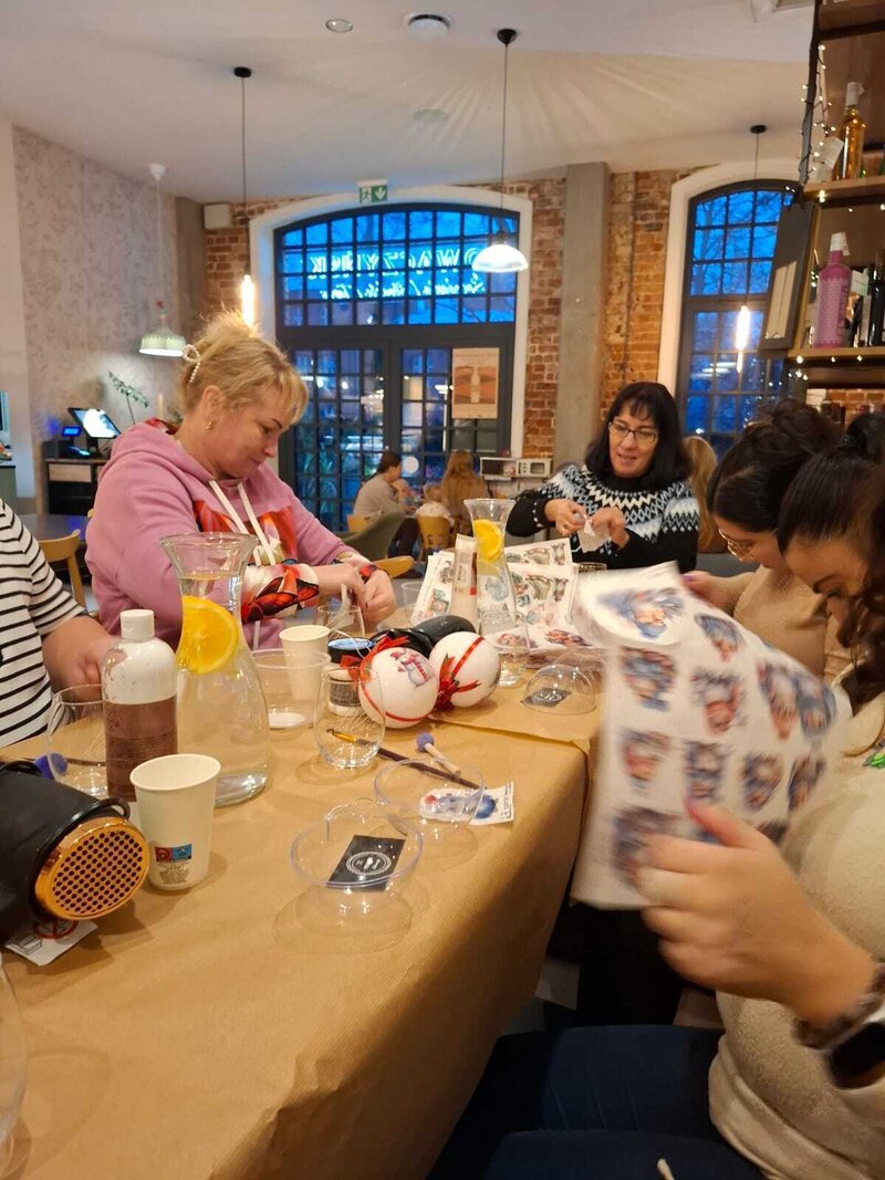 22 listopada 2025 roku w kawiarni Nowaczyński odbyły się wyjątkowe międzykulturowe warsztaty, podczas których uczestniczki samodzielnie przygotowywały świąteczne bombki. Spotkanie miało charakter twórczy, ale też rozwojowy – rozmowy przy stole stały się pretekstem do refleksji nad własnymi pasjami i możliwościami ich przekucia w działania zawodowe.