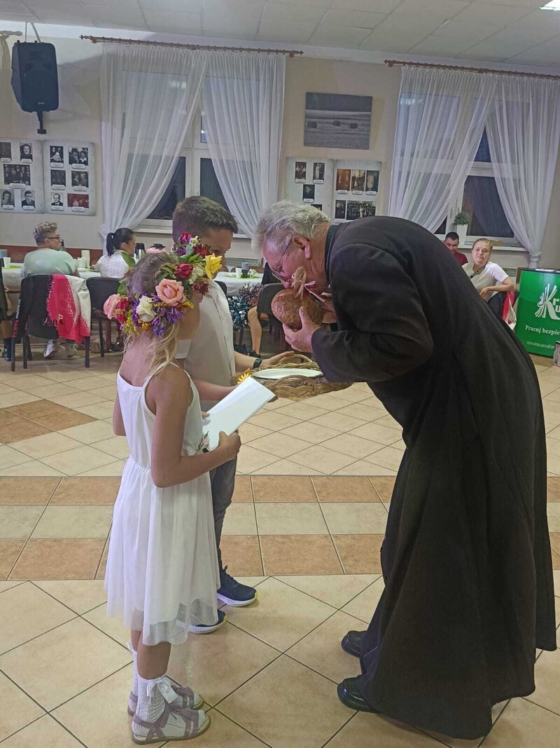 Uroczystość rozpoczęła się od tradycyjnego święcenia chlebków dożynkowych, ale program wydarzenia szybko nabrał dynamicznego tempa. Nie zabrakło emocjonujących konkurencji dla dużych i małych, wspólnych tańców oraz hitu wieczoru – tańca „Belgijka”, który porwał do zabawy całe pokolenia.