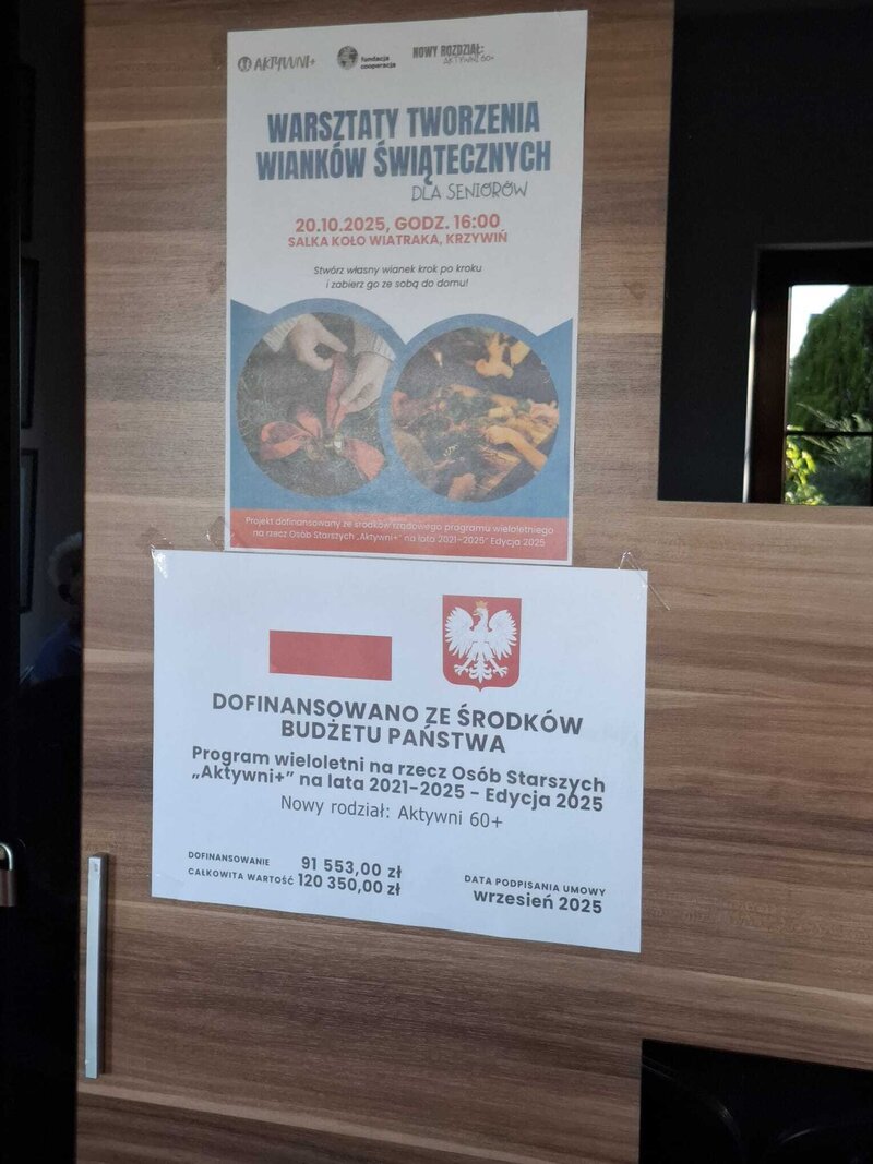 20 października 2025 r. w Krzywiniu odbyły się wyjątkowe warsztaty rękodzielnicze dla seniorów, podczas których powstawały przepiękne wianki świąteczne.