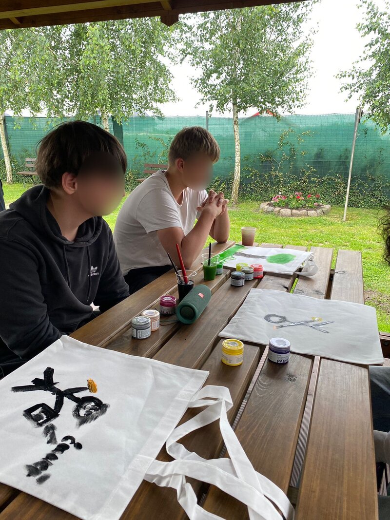 Po zwiedzaniu przyszedł czas na działanie artystyczne – w ramach warsztatów #EkoTorba młodzież mogła ozdobić własne torby ekologiczne, wyrażając swoją kreatywność, emocje i indywidualność. To nie tylko zajęcia manualne, ale również narzędzie do budowania poczucia sprawczości i wartości.