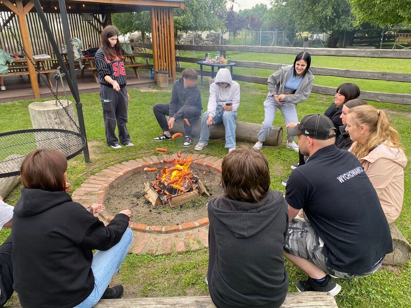 Na zakończenie dnia uczestnicy wspólnie przygotowali ognisko, były kiełbaski, spokojne rozmowy i śmiech przy płomieniach – wszystko to w duchu zaufania, bezpieczeństwa i bycia razem.