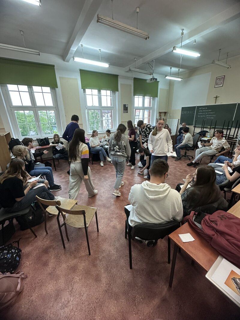 Kolejny dzień warsztatów w I LO w Lesznie – tym razem 24 kwietnia 2025 roku, podczas których Grupa 3 pracowała nad kluczowymi kompetencjami miękkimi w ramach projektu „Przestrzeń rozwoju – nasz czas na sukces”.