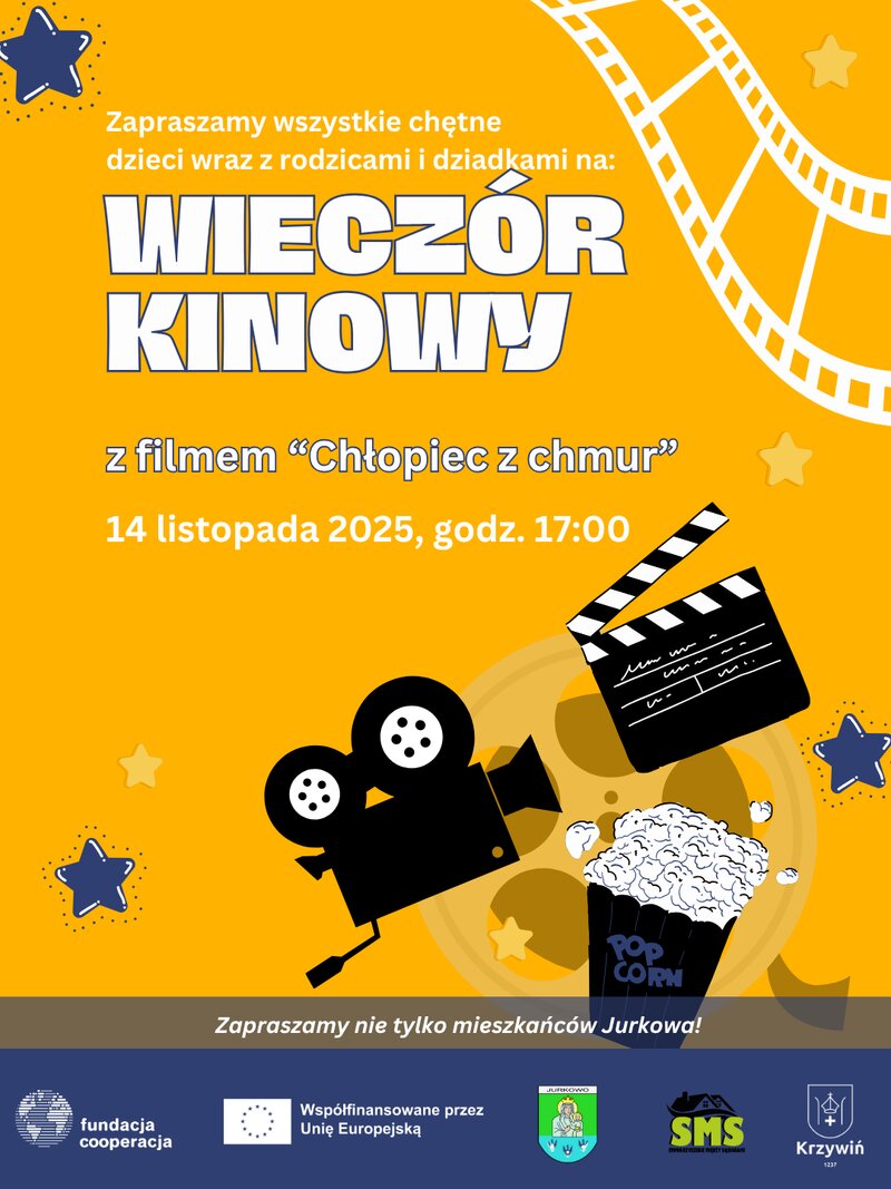 Już 14 listopada 2025 r. o godz. 17:00 w Jurkowie odbędzie się wyjątkowy wieczór filmowy, na który zapraszamy dzieci, rodziców i dziadków. Wspólnie obejrzymy poruszający i pełen przygód film „Chłopiec z chmur” – idealny na rodzinny seans z przekazem.
