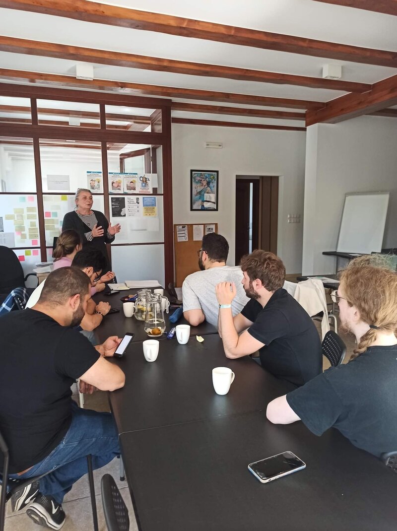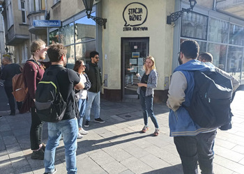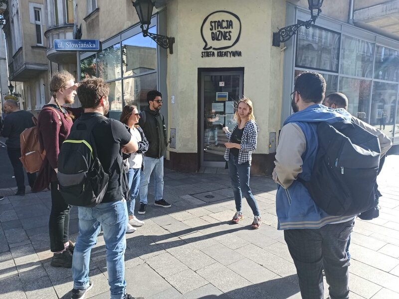 W drugim dniu wybraliśmy się z wizytą studyjną do Przystanku Leszno, Centrum Integracji Cudzoziemców w Lesznie oraz Stacji Biznes, gdzie Agnieszka Ptaszyńska z Fundacji Leszno dla Ukrainy opowiedziała nam o funkcjonowaniu punktu dla uchodźców.