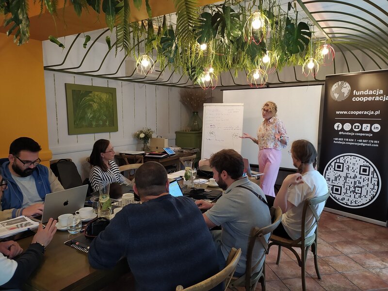 Podczas pierwszego dnia wzięliśmy udział w inspirującym warsztacie z Moniką Filipowiak, która zaprezentowała nam przykłady działań na rzecz integracji osób z doświadczeniem migracyjnym i uchodźczym, z lokalną społecznością.