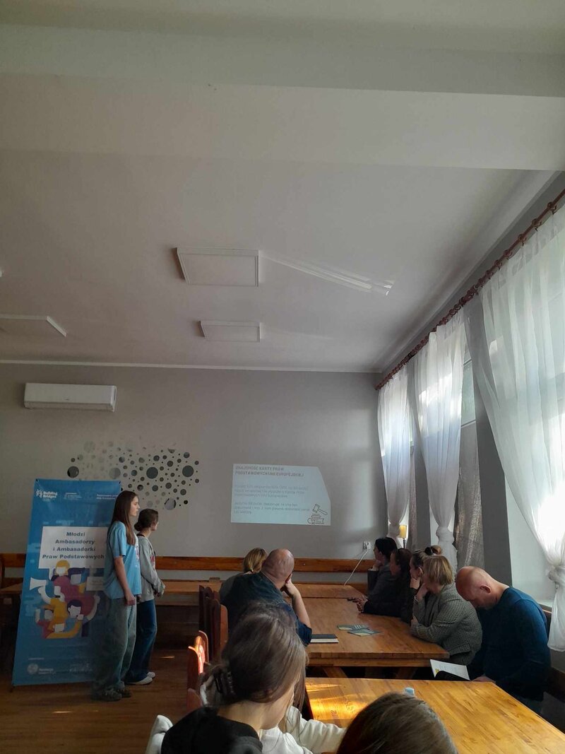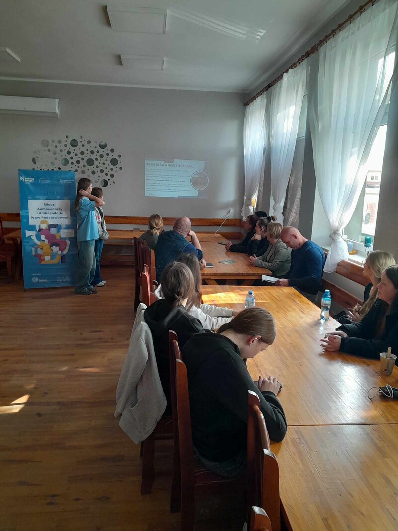 5 maja 2025 r. w świetlicy wiejskiej w Wiewierzy odbyło się wyjątkowe spotkanie młodzieży z gminy Wąsosz z lokalnymi decydentami. W ramach projektu „Młodzi Ambasadorzy i Ambasadorki Praw Podstawowych” młodzi uczestnicy zaprezentowali wyniki swojej diagnozy lokalnej, dotyczącej znajomości i przestrzegania Karty Praw Podstawowych Unii Europejskiej w ich społeczności. To jednak nie wszystko – po raz pierwszy oficjalnie przedstawili także postulat powołania Młodzieżowej Rady Gminy Wąsosz!