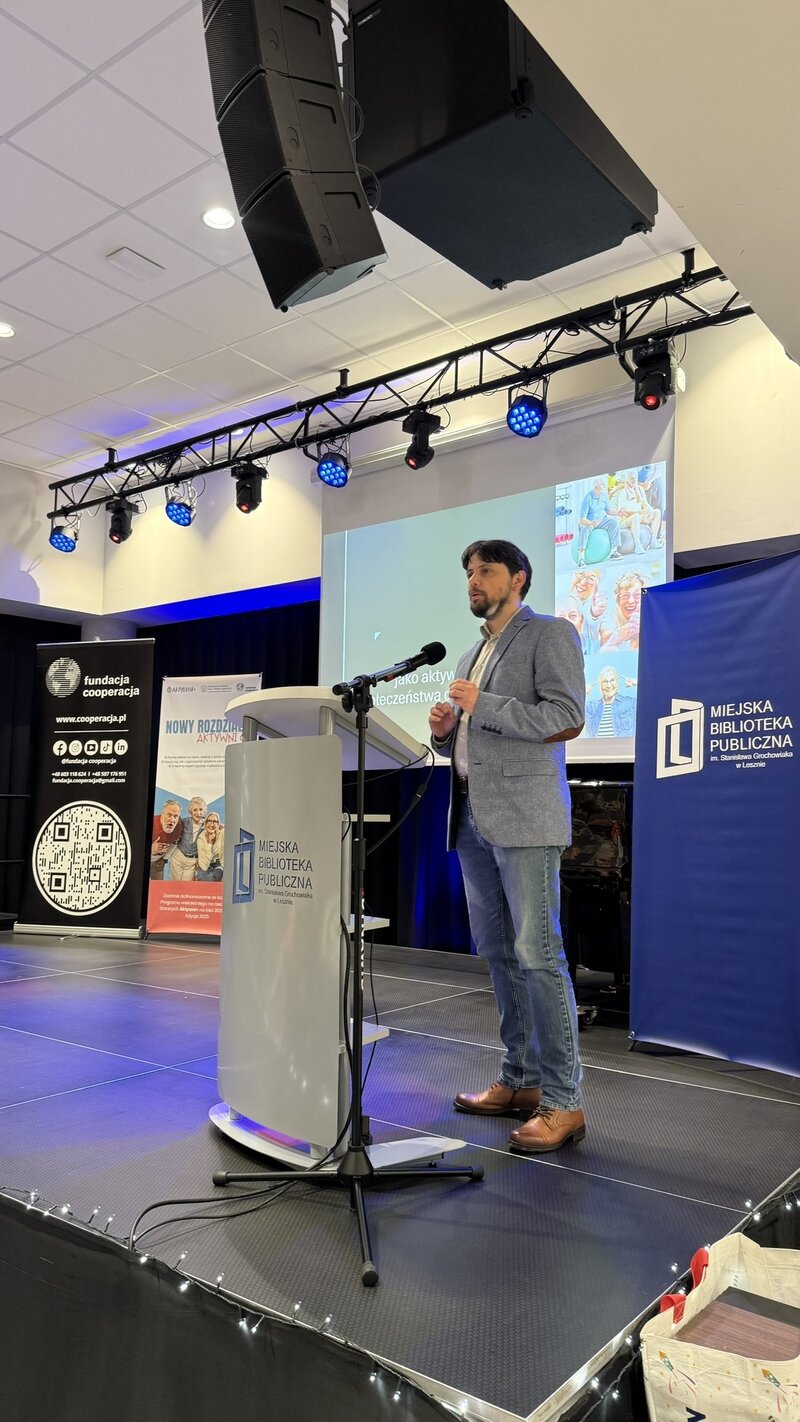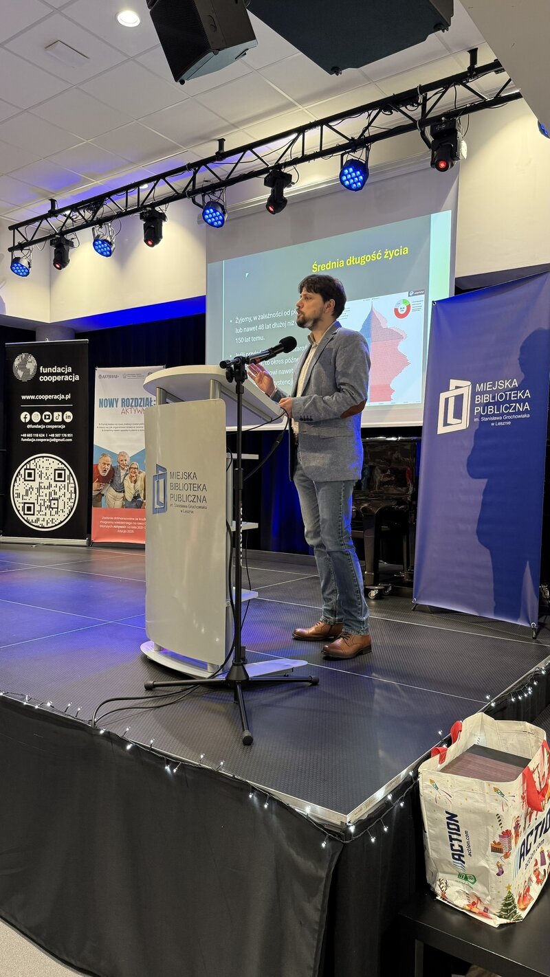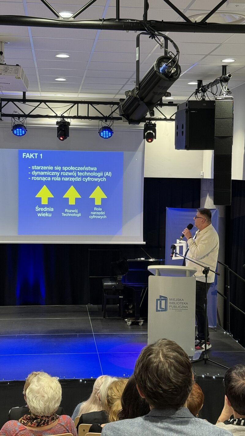 - Dominik Sieciński przedstawił perspektywę nowoczesnych technologii w życiu osób starszych – jako szans, ale też wyzwań;