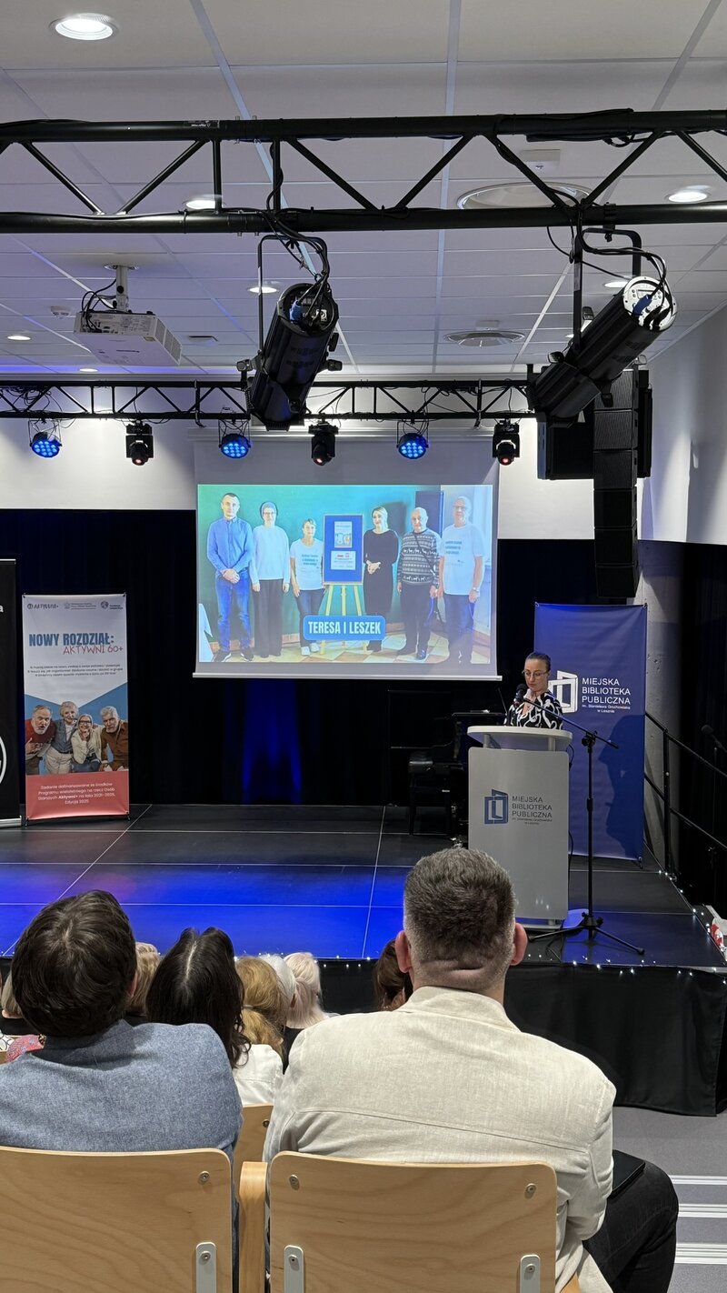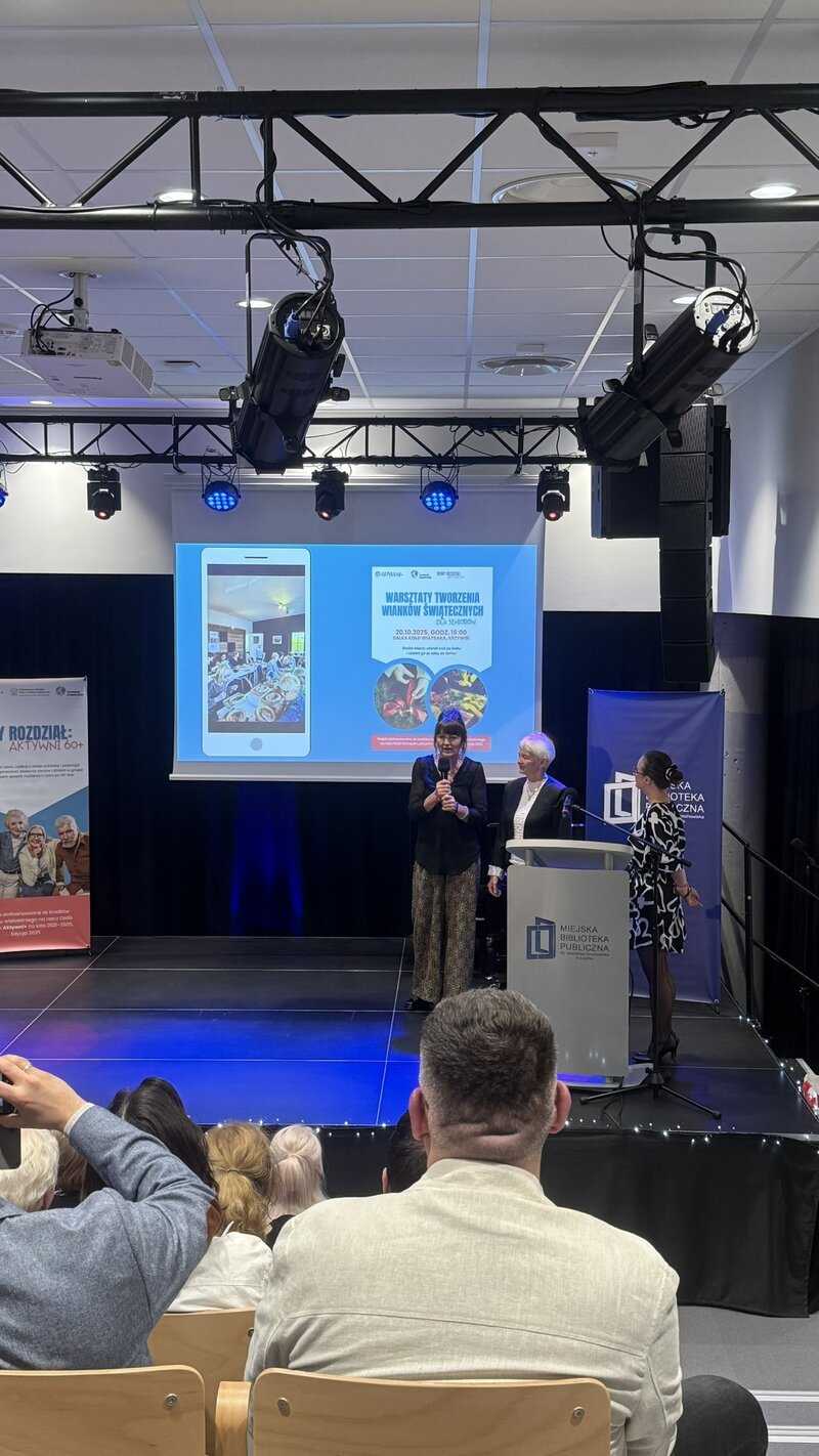 Jednym z najważniejszych punktów programu była prezentacja sześciu lokalnych inicjatyw, które zrealizowali uczestnicy projektu. Ich działania – różnorodne, twórcze i w pełni oddolne – pokazały, jak ogromny potencjał drzemie w osobach starszych, jeśli tylko dać im przestrzeń i wsparcie.