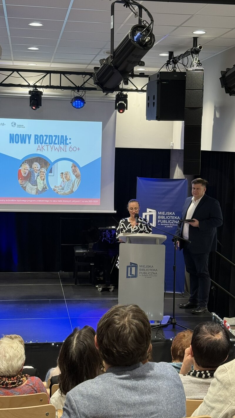 10 grudnia 2025 roku w sali audiowizualnej Miejskiej Biblioteki Publicznej w Lesznie odbyło się uroczyste podsumowanie projektu „Nowy Rozdział: Aktywni 60+”. Spotkanie zgromadziło uczestników, liderów i zaproszonych gości.