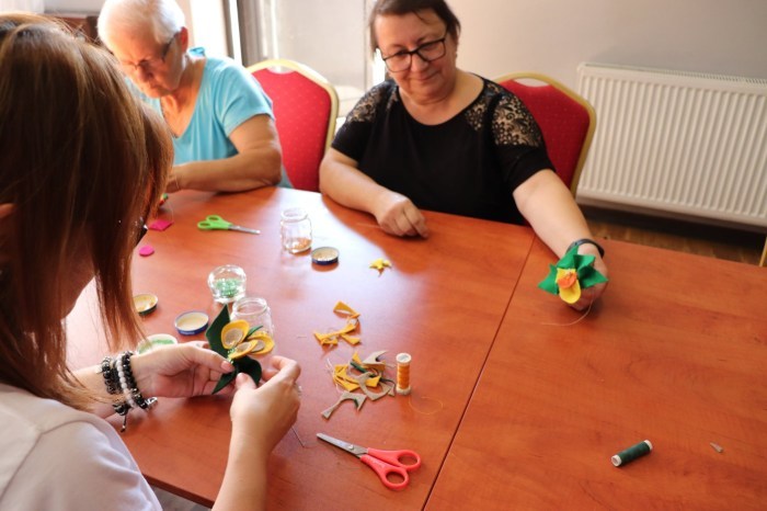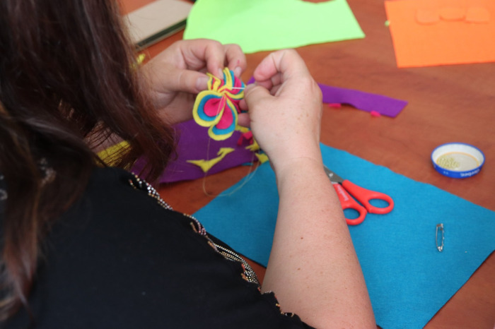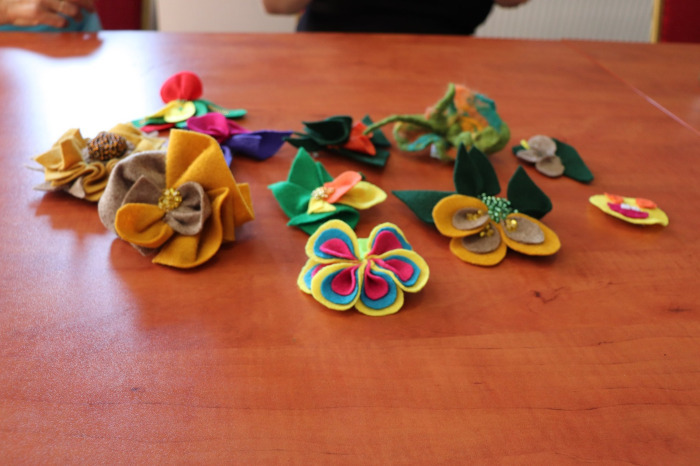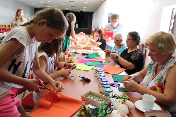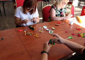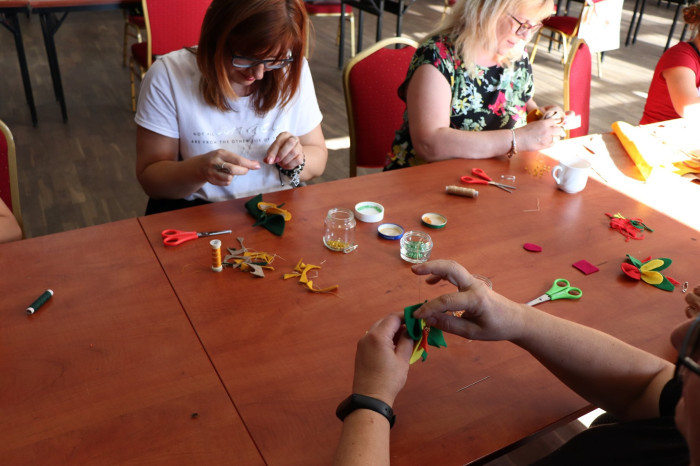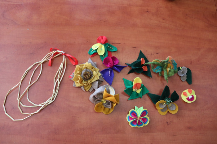 Broszki z filcu oraz słomiane naszyjniki były główną atrakcją drugich warsztatów.