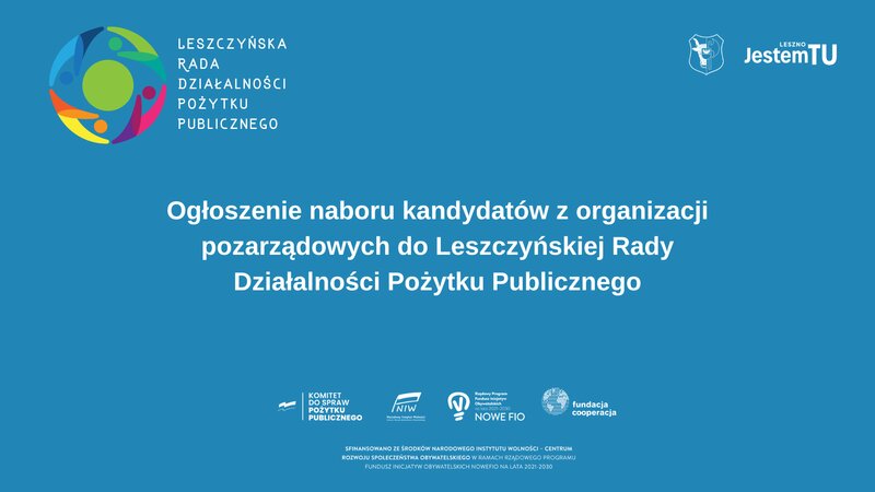 Ogłoszenie naboru kandydatów z organizacji pozarządowych do Leszczyńskiej Rady Działalności Pożytku Publicznego