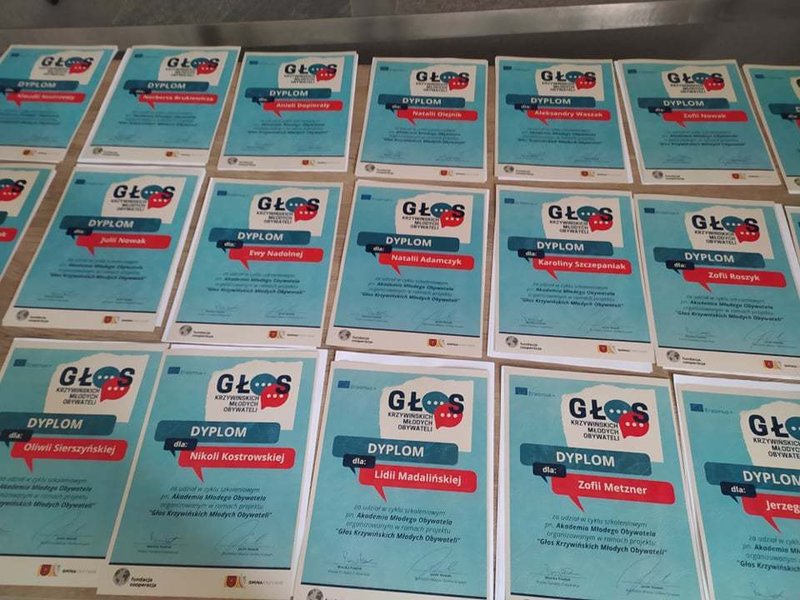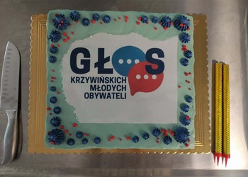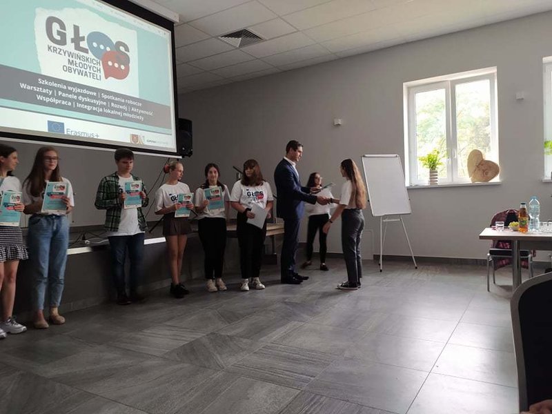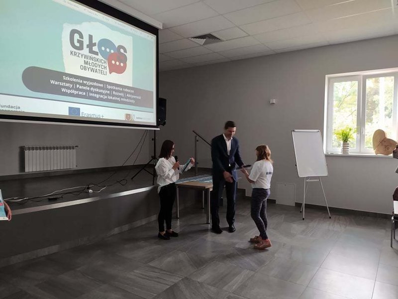 Wydarzenie zwieńczyło uroczyste wręczenie dyplomów i certyfikatów youthpass, przemowa Burmistrza Miasta i Gminy Krzywiń i tort z logotypem projektu.