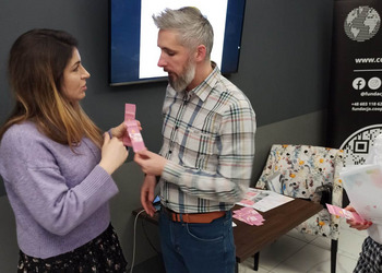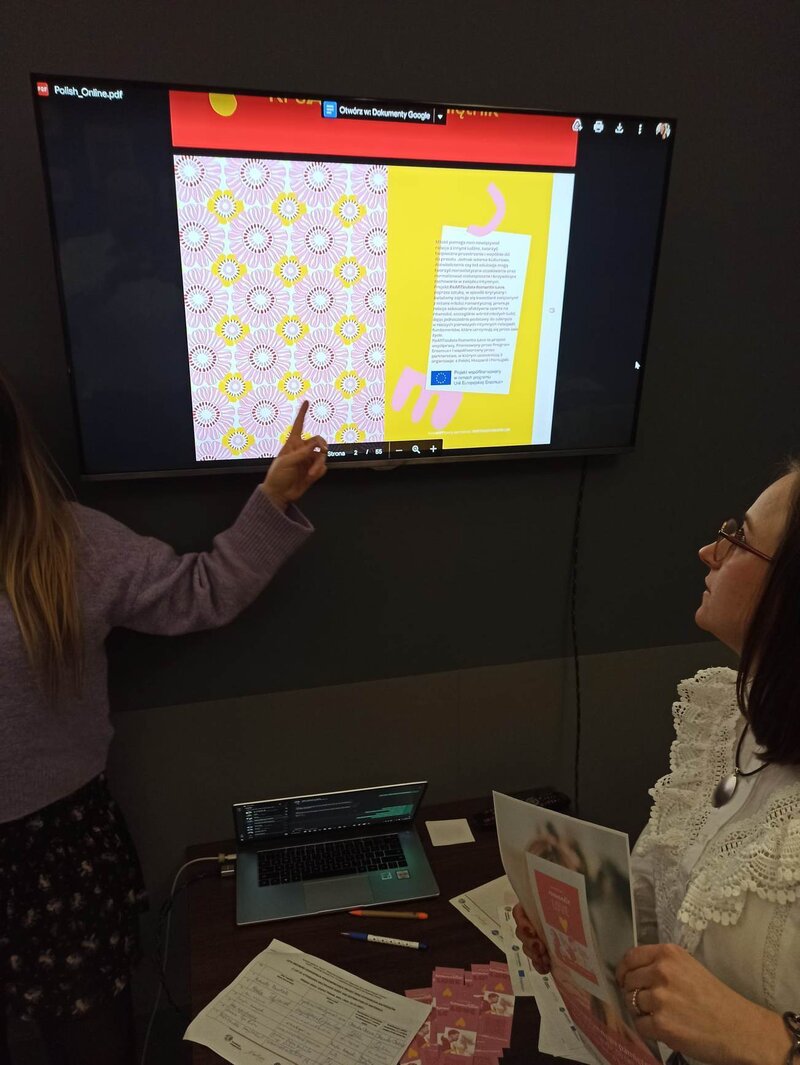 Uczestnicy i uczestniczki zapoznali się z przykładowymi ćwiczeniami zawartymi w pamiętniku, a na koniec otrzymali także zakładki do książki z QR kodem, odsyłającym do cyfrowej wersji publikacji.