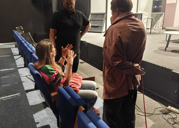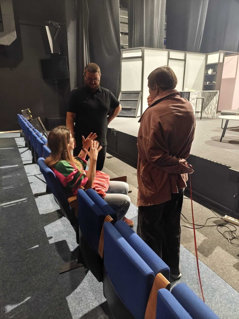 Rozmowy dotyczyły kwestii technicznych, logistyki, światła, dźwięku i aranżacji przestrzeni. Była to także okazja do zapoznania się z warunkami scenicznymi i możliwościami, jakie oferuje teatr – a także do pierwszej wizyty w miejscu, gdzie niebawem spotka się publiczność z historią stworzoną przez uczestników międzynarodowego projektu.