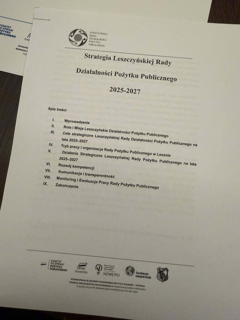 Wypracowana strategia stanowi fundament dla dalszej pracy Rady i krok w stronę bardziej przejrzystego, partnerskiego i odpowiedzialnego dialogu pomiędzy samorządem, organizacjami społecznymi i mieszkańcami Leszna.