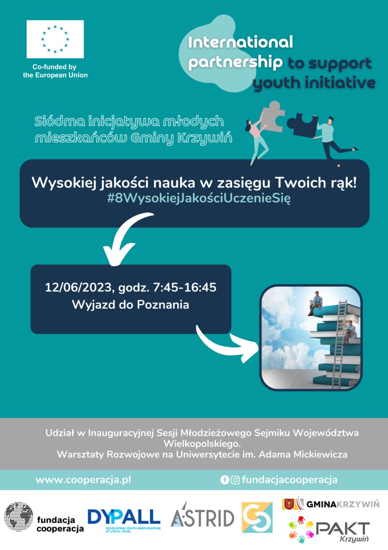 Tą inicjatywą pragniemy podkreślić ważność Europejskiego Celu Młodzieżowego numer 8 - Wysokiej Jakości Uczenie Się. Chcemy pokazać, że edukacja to klucz do osobistego rozwoju i osiągania sukcesów, które są w zasięgu naszych rąk. Będziemy wspólnie dążyć do doskonalenia naszych umiejętności i zdolności, aby osiągnąć wysoką jakość nauki.