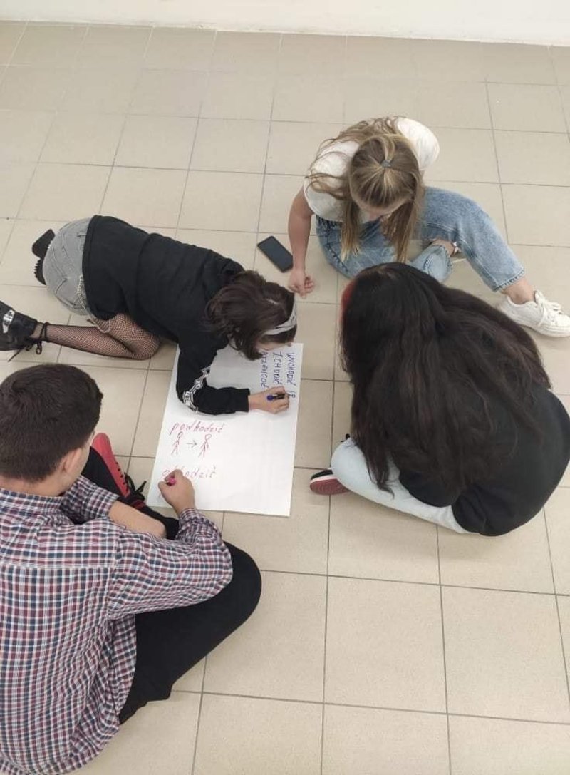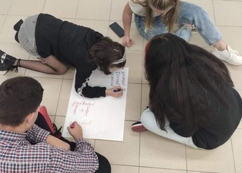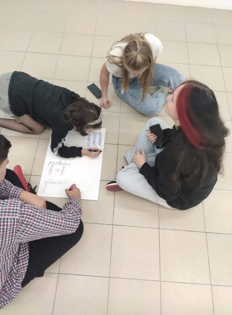 Na zajęciach grupy podstawowej zajęliśmy się czasownikami ruchu. Odkryliśmy ile słów można stworzyć dodając prefiksy do słowa "chodzić" i "jeździć".