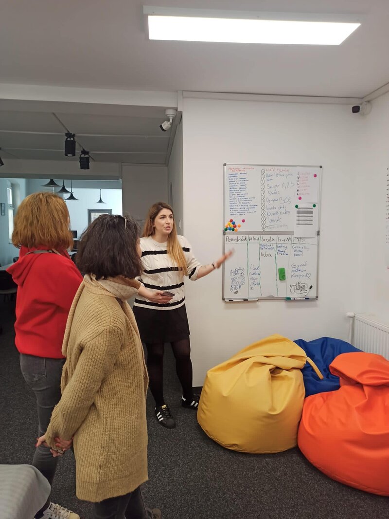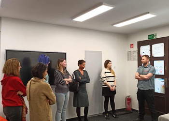 Następnie udałyśmy się na wizytę studyjna do Ośrodka Kuratorskiego nr 1 w Lesznie, gdzie jego kierownik - Michał Domagała - opowiedział nam o funkcjonowaniu placówki oraz o efektach, jakie przynosi tego typu praca z młodzieżą.