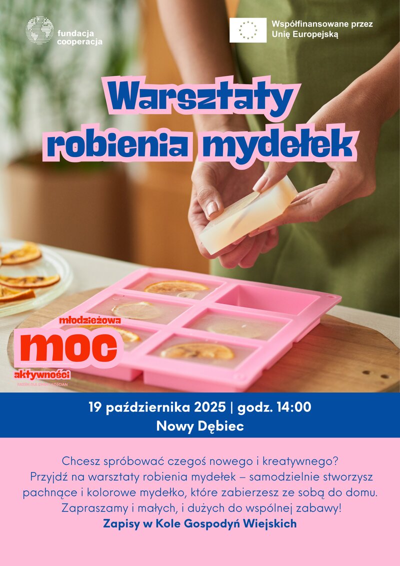 19 października 2025 r. o godz. 14:00 w Nowym Dębcu odbędą się warsztaty robienia mydełek.
