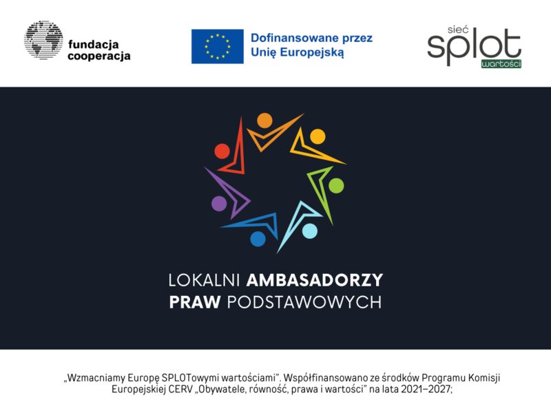 Projekt „Lokalni Ambasadorzy Praw Podstawowych” realizowany jest w ramach projektu grantowego „Wzmacniamy Europę SPLOTowymi wartościami” współfinansowanego ze środków Programu Komisji Europejskiej CERV „Obywatele, równość, prawa i wartości” na lata 2021-2027.